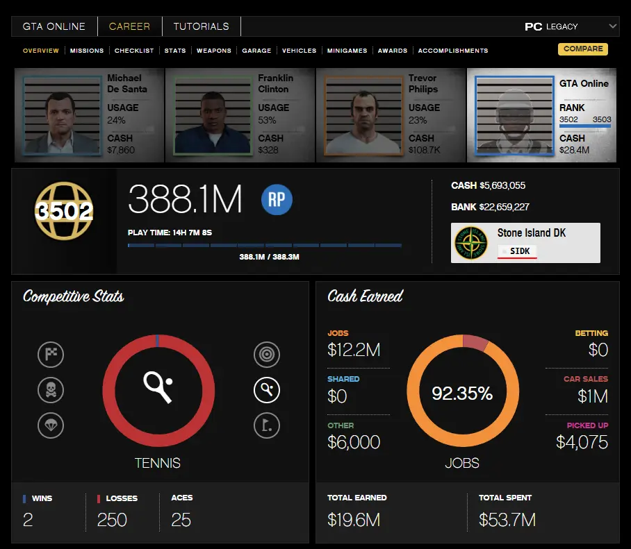 SOCIAL CLUB / ROCKSTAR / PC / LEGACY  |  $28.4M total money(bank&cash)  |  GTA5 ONLINE RP LVL(Level) 3502  |  MALE OR FEMALE  | STORY MODE avaliable | Changable Email | HANDCRAFTED