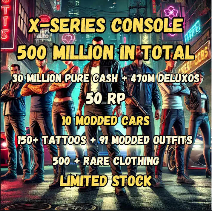 Xbox Series Enhanced Modded Outfits Account | Male Character | Max Stats & 150+ Rare Tattoos | 91 Modded Outfits + 500M (30M Pure Cash + 470M Deluxos) | RP 50 | 10 Modded Cars | #GTAXSCC173