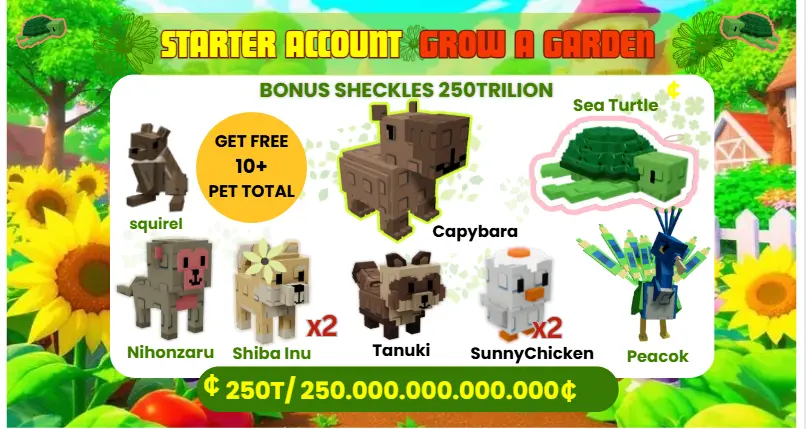 Premium GAG Starter Account | Capybara + 10 Pets + 250T Shekcles Bonus | Grow A Garden