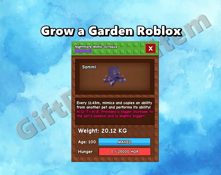 Mutation Nightmare Mimic Octopus 20Kg ++ Age 100 Grow a Garden