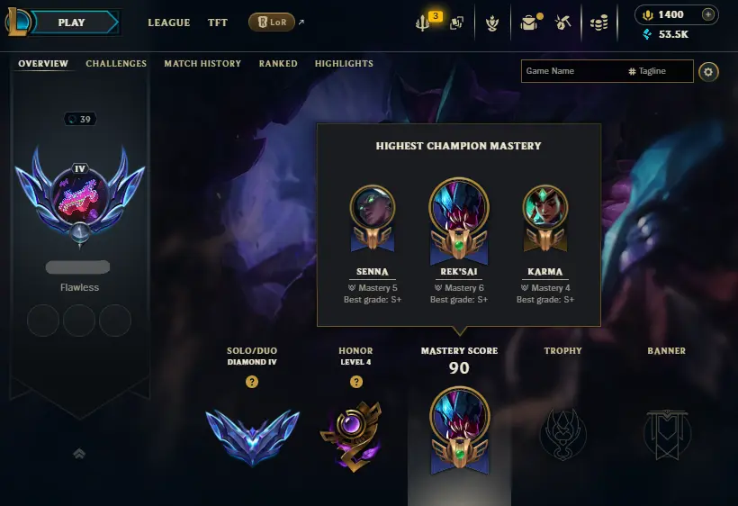 DIAMOND 4 60%WR🔥+30LP Gains💎53K+ BE 1400RP 10Skins⭐Name Change🔓Unverified Email✅Instant Full Ownership + Recovery Info Included