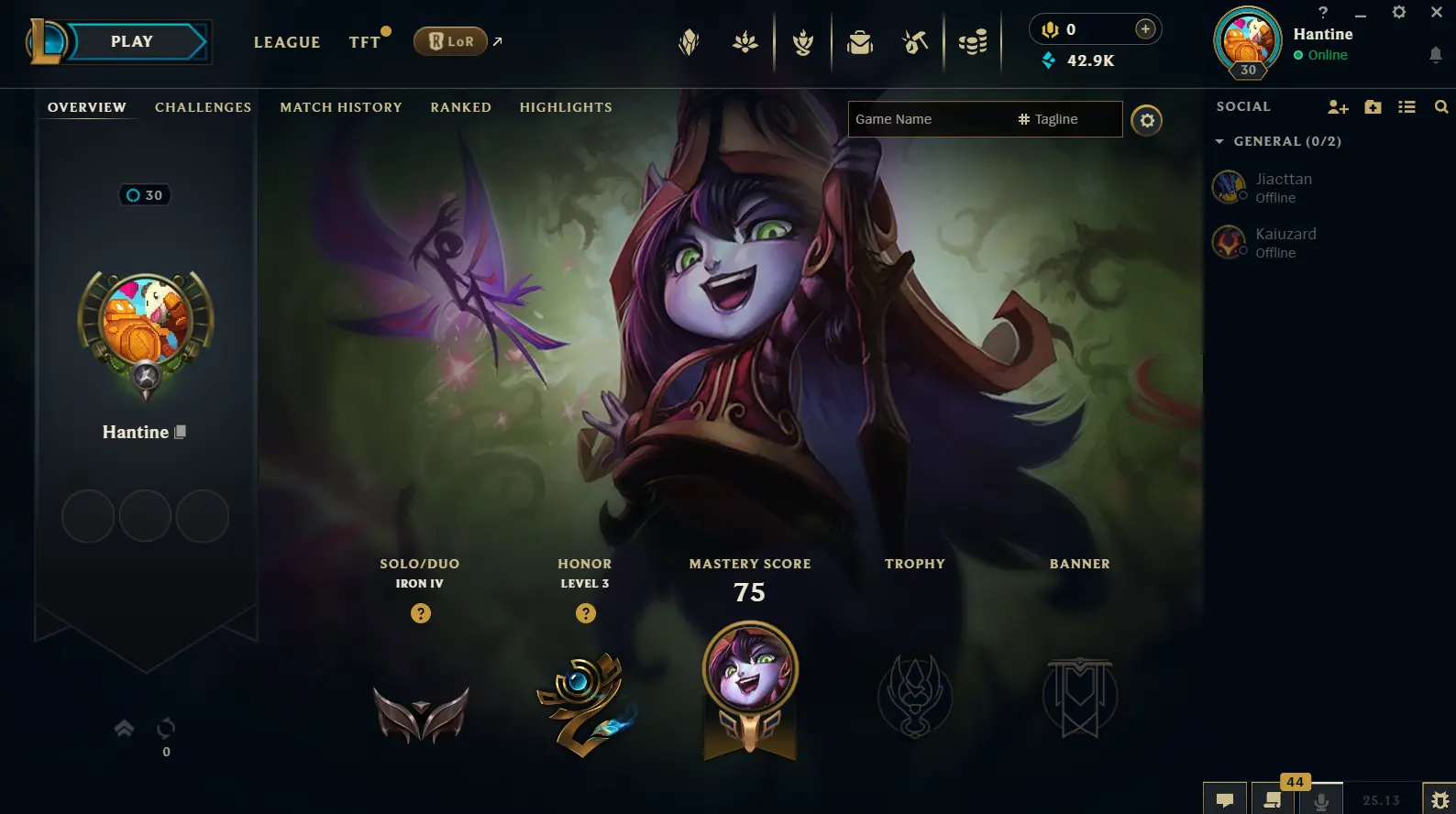 EUW IRON IV 0LP 🛠️ BE 44000+ Champions 21 🎯 Honor Level 3 Verified 👤 Clean Summoner Season 15 Split 2 Unverified | Safe Stock 🛡️
