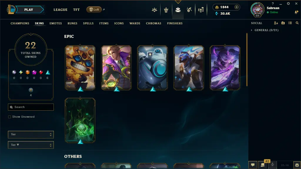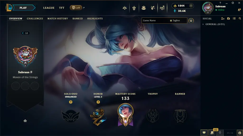 【EUW】– Level 51 🎮 Unranked 🏅 – 22 Skins 🎨 [30,640 BE 💎 | 1,844 RP 🔥 | 10 MESS ✨] – Honor 3 🌟 – 59 Champs ⚔️