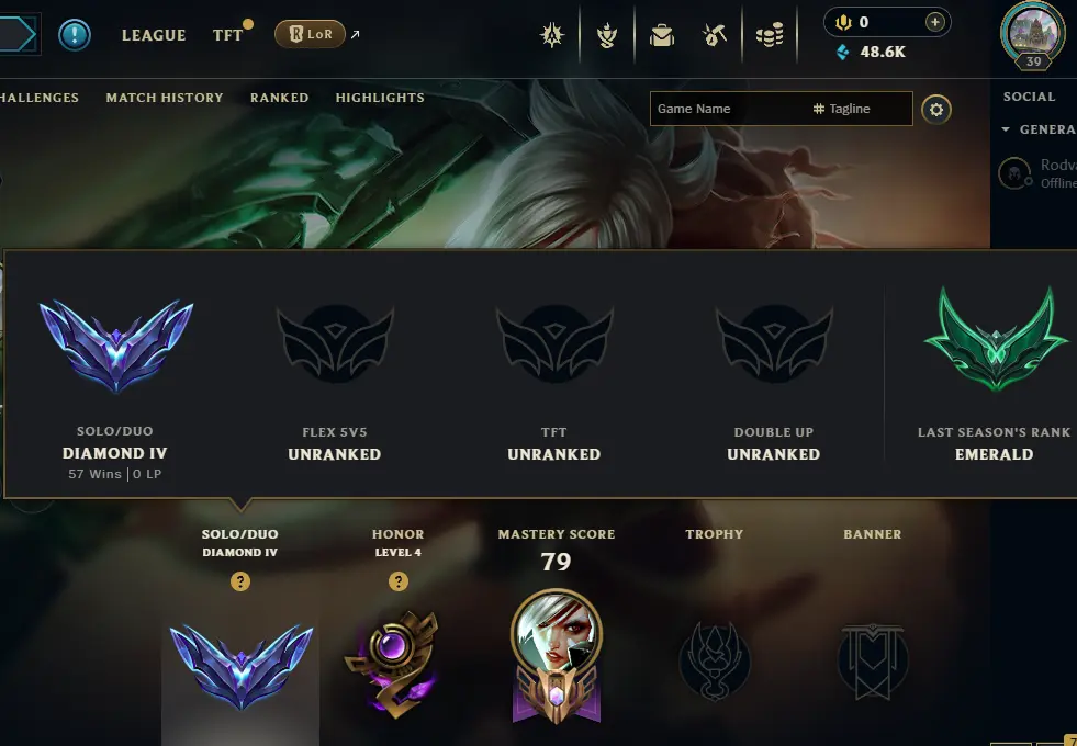 🎯 EUW [S15 ]✨ Handmade🔥Diamond IV 🔥 Champs: 24⚡ BE: 48640⚡ Skins: 3⚡ Honor Level 4⚡ 66% Winrate ✅ Full Access ⚡ Instant Delivery 🆔 #GKB72EU565