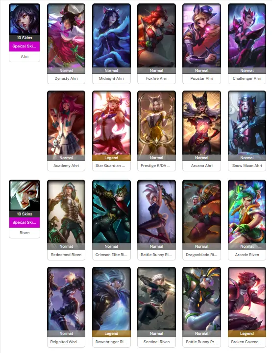 LoL 518 skins 169 characters Europe West 205 Level	mssh893