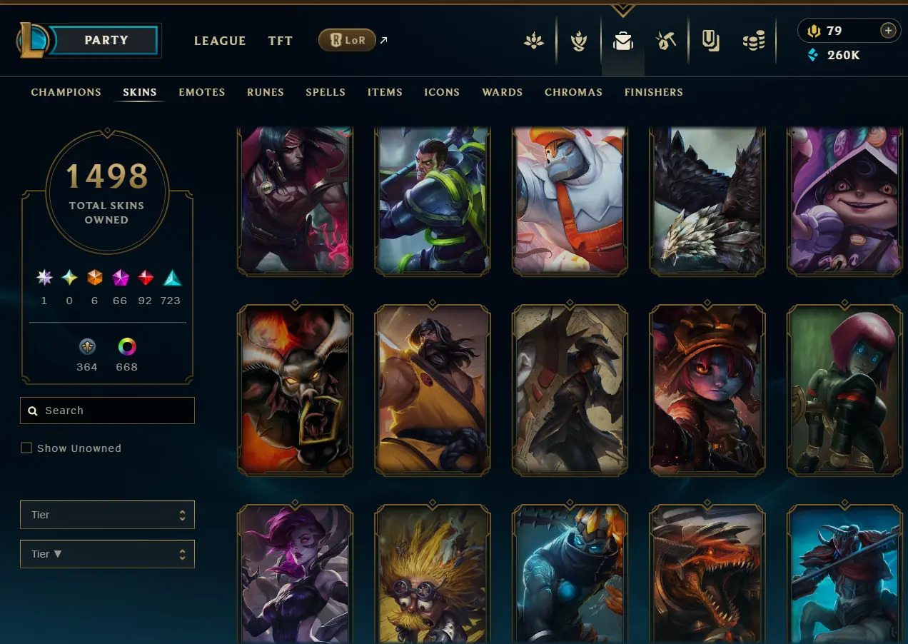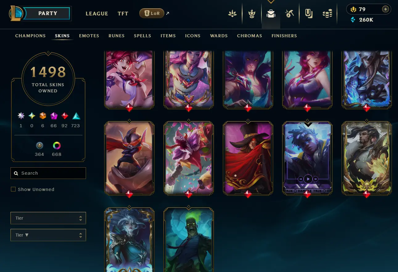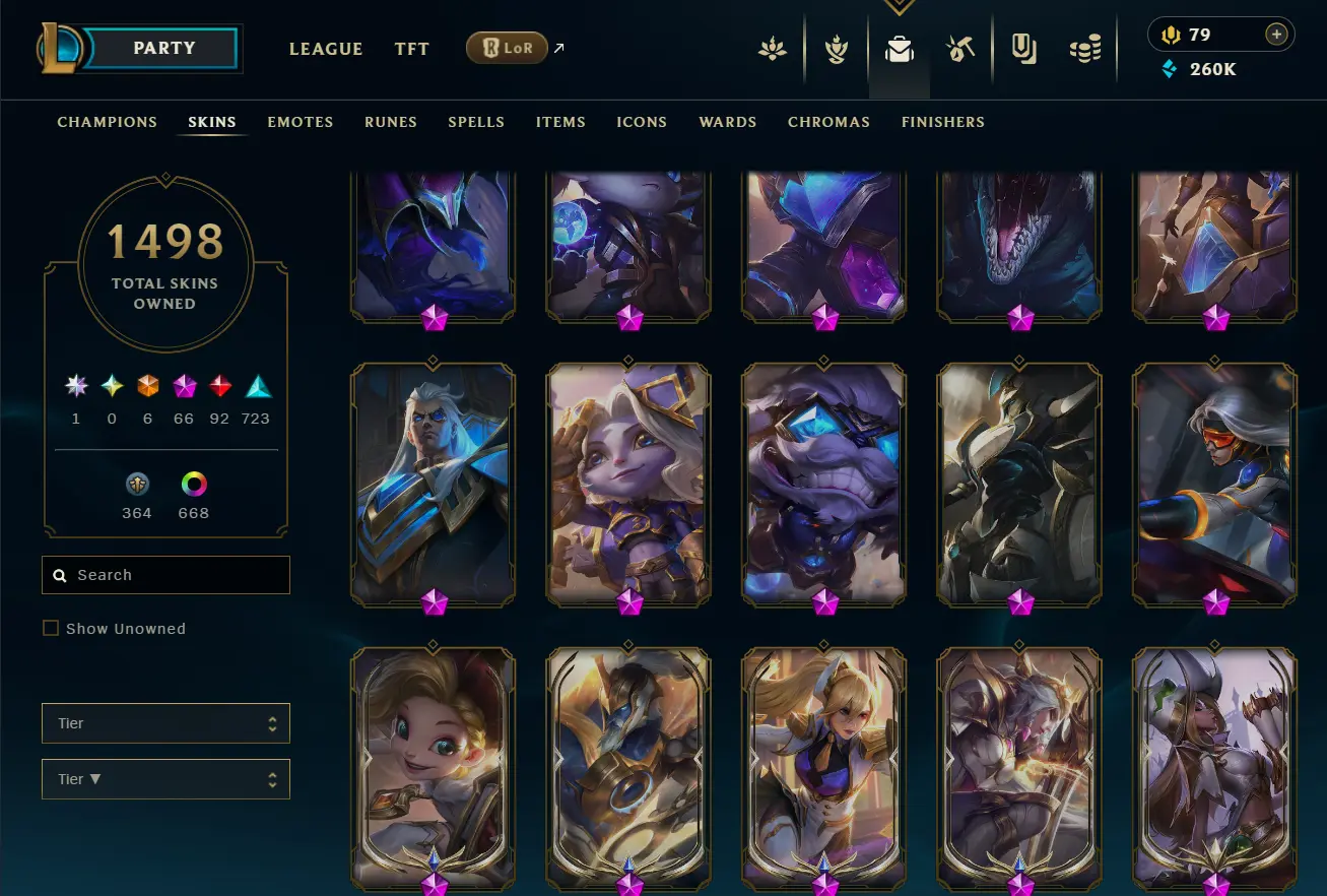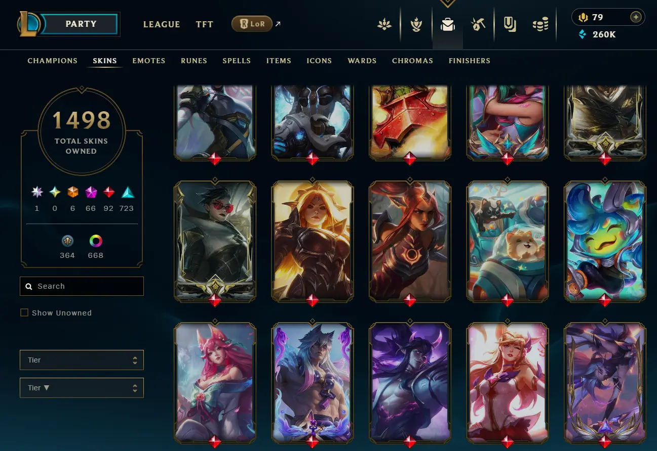 [NA] 1498 skins~ Immortalized Legend Ahri + Black Alistar + Risen Legend Vayne&LeBlanc + Unchained Alistar + 682 Chromas + 692 Icons