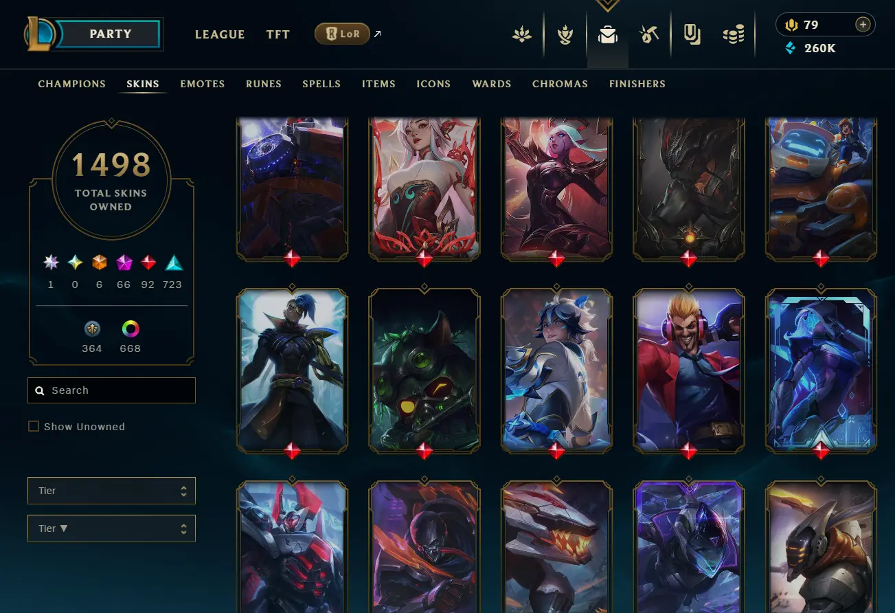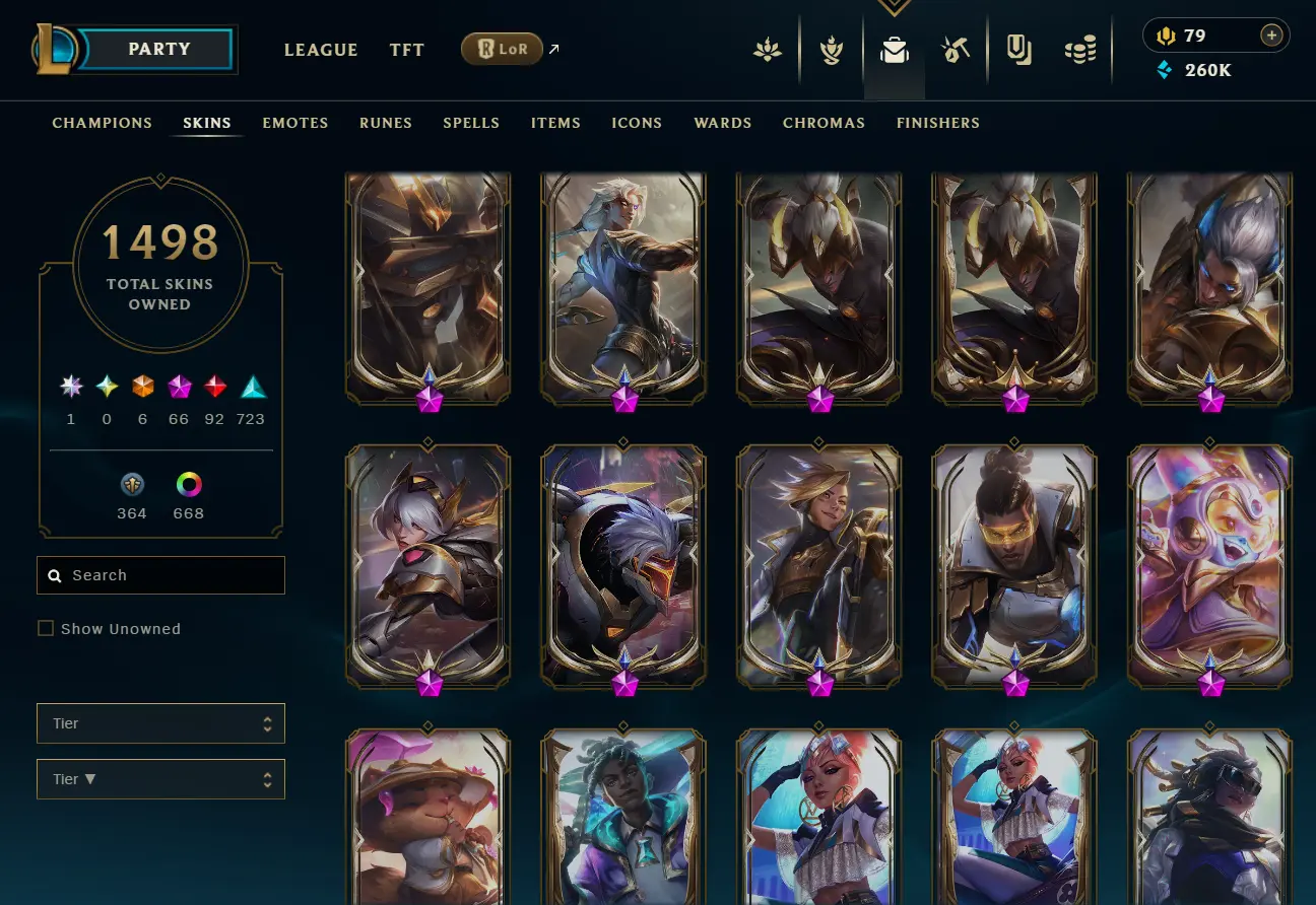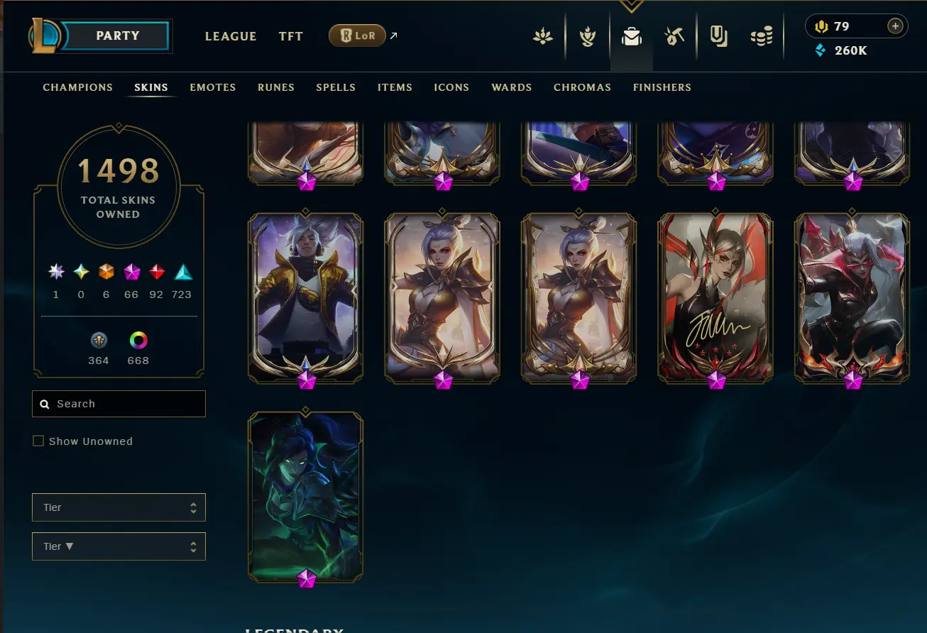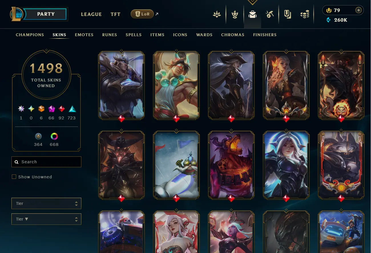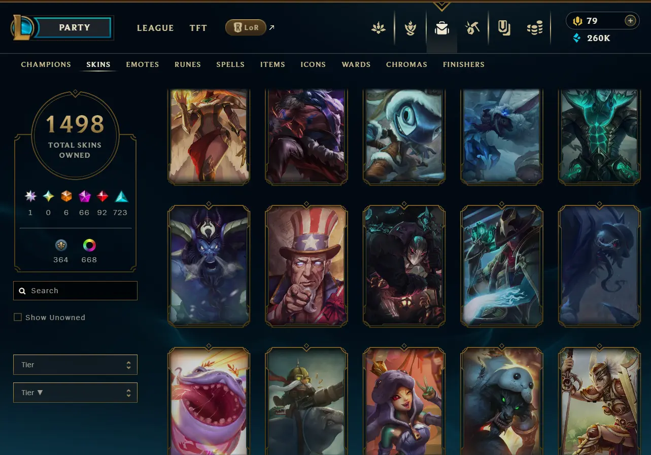 [NA] 1498 skins~ Immortalized Legend Ahri + Black Alistar + Risen Legend Vayne&LeBlanc + Unchained Alistar + 682 Chromas + 692 Icons