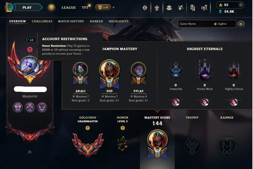 TR Region🌐Grandmaster 390LP 64%WR🏆GM Rewards✓ (72Champs 38Skins)✅Lifetime Ownership Guarantee ⸱ Never Taken Back