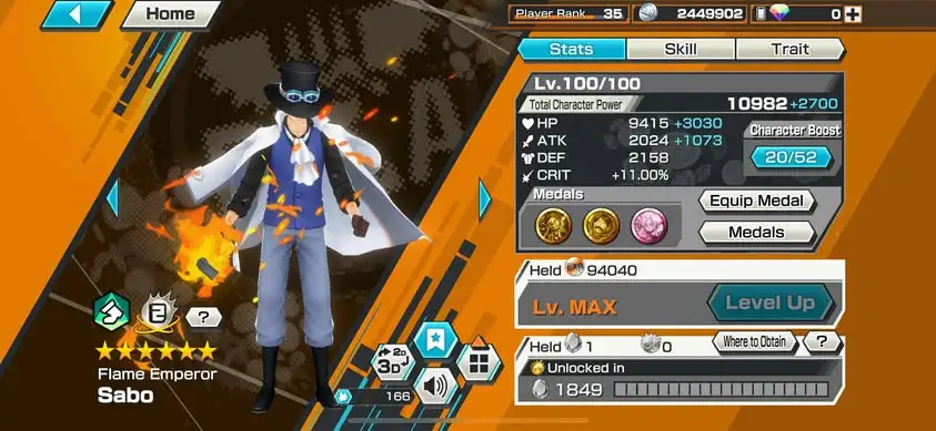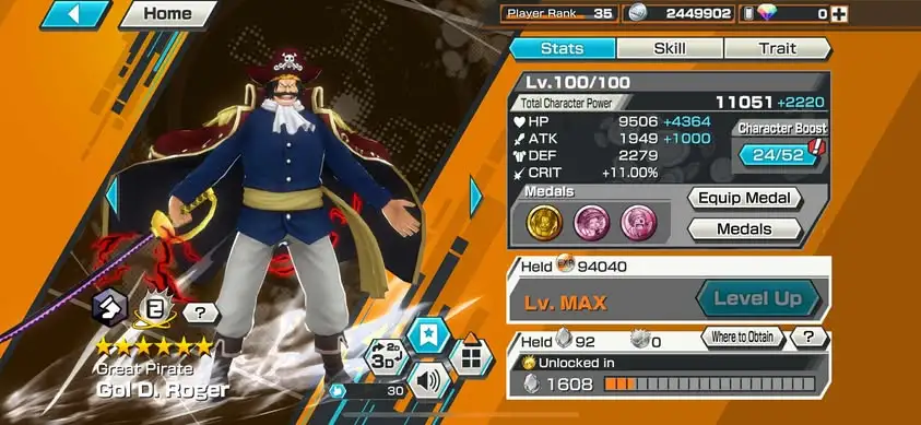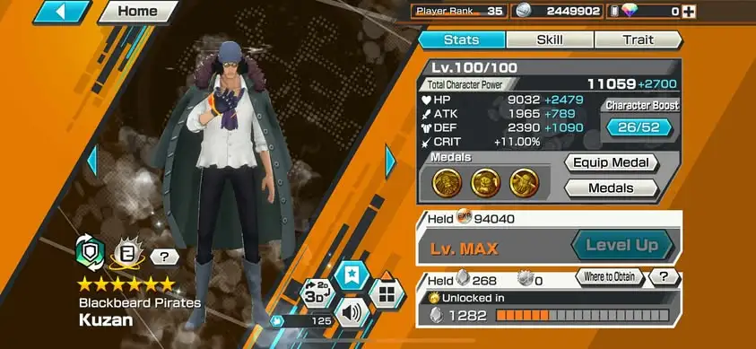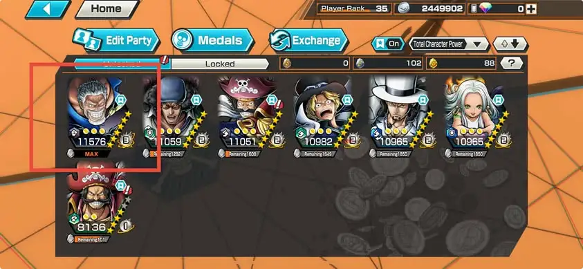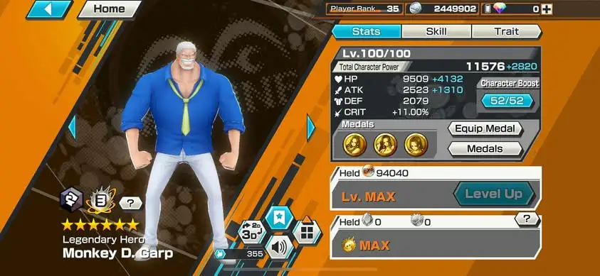 [3358][IOS+ANDROID] 7 EX META / HB 14 / Garp Full B52/52 + Lucci + S-Snake + Kuzan + Sabo + Roger Dark + Roger Green , Support 160% , Good Medal