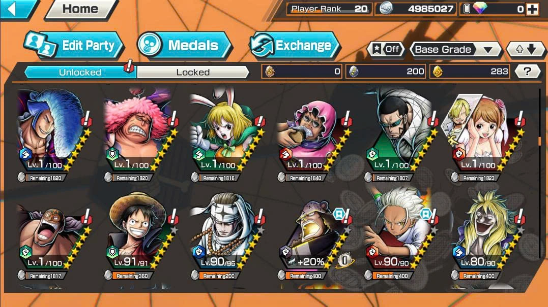 BR671-IOS+Android-Garp Boost 3+5 Ex(Lucci+Snake+Gear 5+Kizaru)+Good Medal+Support 146%+Egghead Sanji Max+Donflamingo Max+Pacifista+S-Hawk+Jabra+Dorry+Shiryu+Sentomaru v2+Kuma+