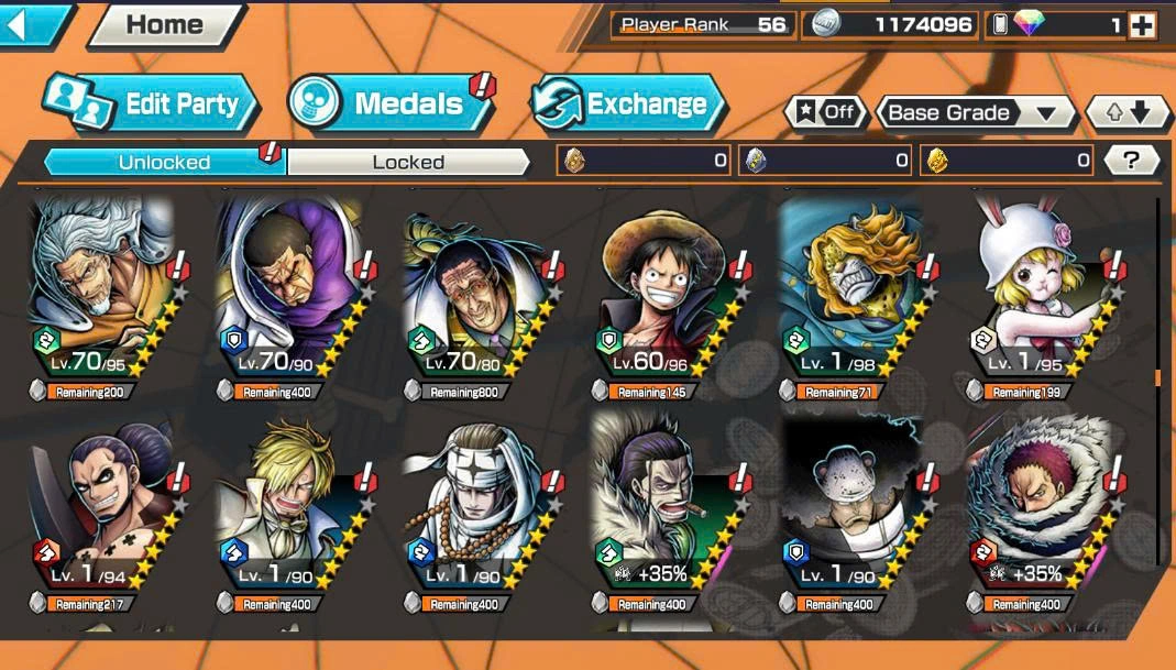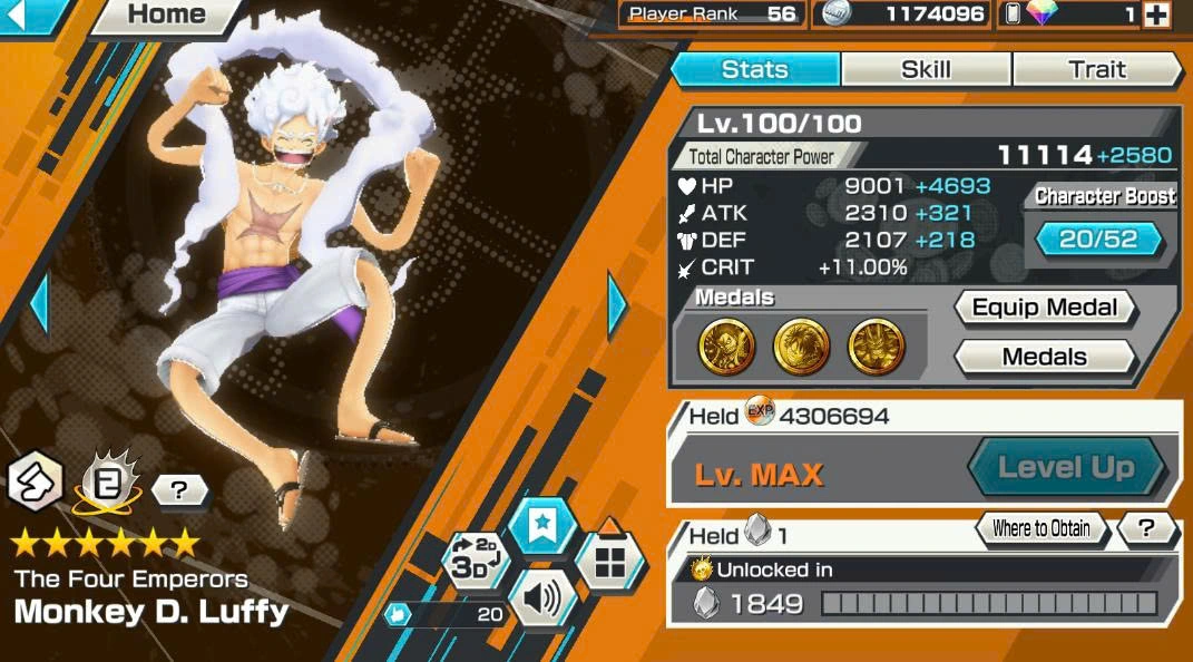 BR679-IOS+Android-Hyber Boost 52+11 Ex(Gear 5 v2+Garp+Shank v4+Zoro+Lucci+Yamato Ace+Roger+White Beard+Kaido+Shank v2+Black Beard)+Vip Medal+164%+Many BF Max+Good Account