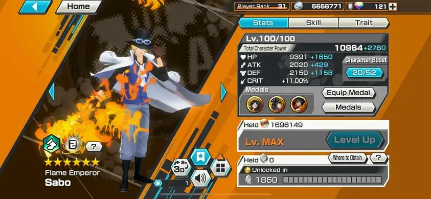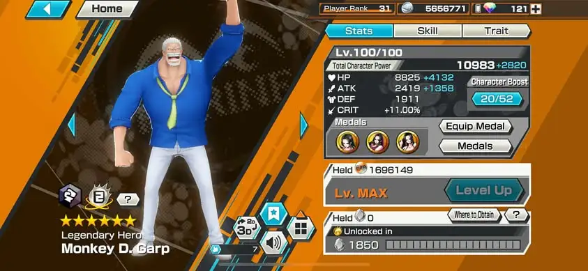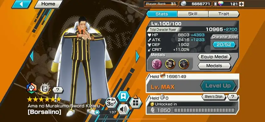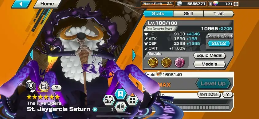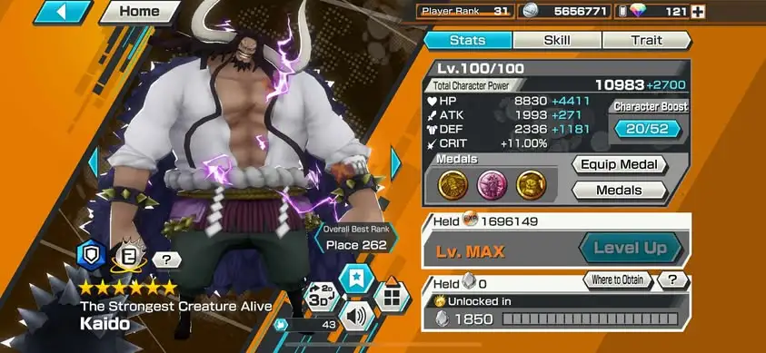 [Levi][IOS+ANDROID] 10 EX META / Kizaru + Luffy Light + Garp + Saturn + Akainu + Sabo + Shanks + Kaido + Zephyr + Big Mom , Support 150% , Best Medal