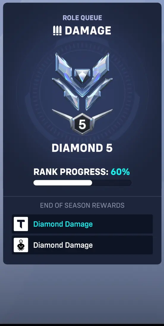 [Diamond Dps Rank] ⸱ [Season 19]✔ [placement Finished] ✔ Free Name card ✔ Instant ✔ All Heroes ✔ Full Access ✔ Diamond Damage ✔ Phone verified