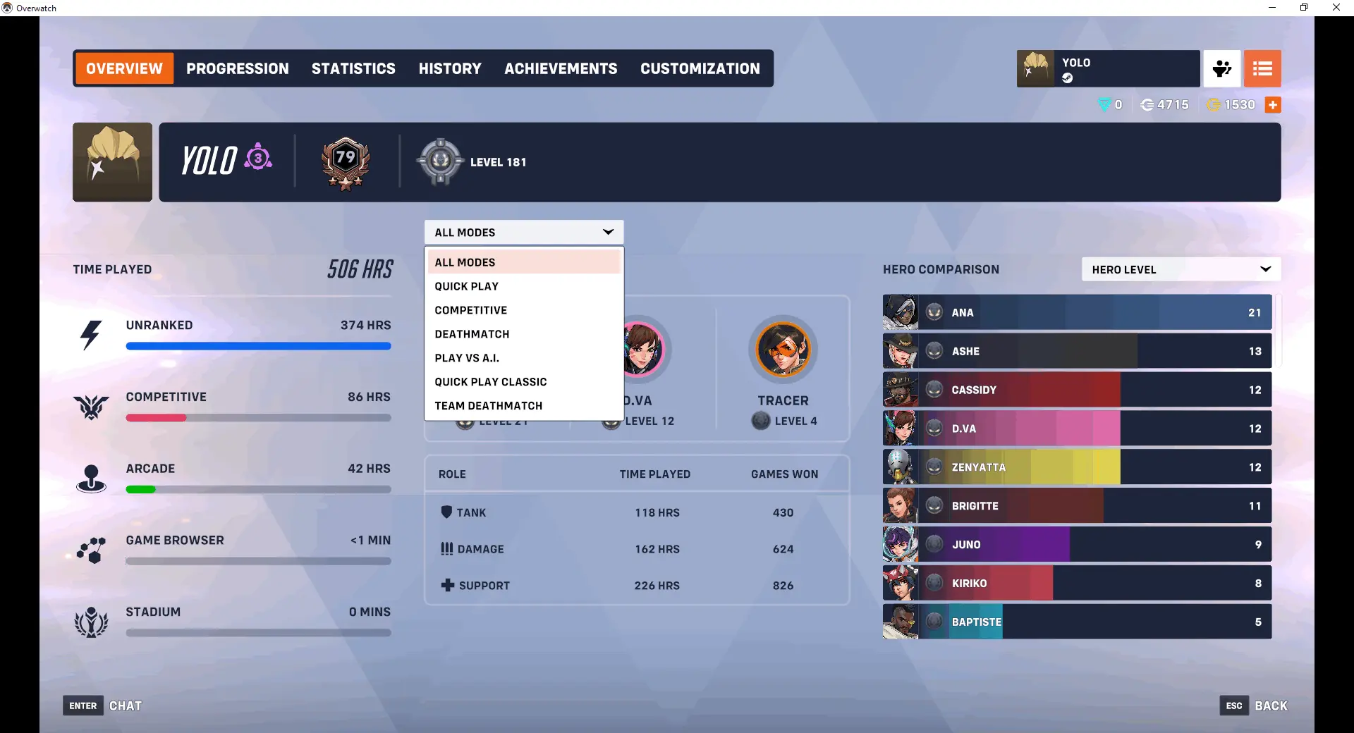 Steam Account + 278 SKINS + ANA Golden Weapon + MEI MEI-RRY + REAPER CURSED CAPTAIN + WIDOWMAKER COTE DAZUR + WIDOWMAKER KERRIGAN + TRACER GRAFFITI +