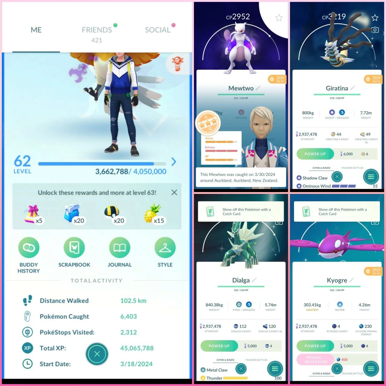 🍀{ 8 OG Tradable Mewtwo } 🍀LVL 62 POKÉMON GO ACCOUNT (2024 CREATION) | 223 SHINIES ✨ | 192 LEGENDARIES ⭐ | 105 HUNDOS 💯 | STACKED, SAFE & 100% LEGIT | INSTANT DELIVERY ⚡
