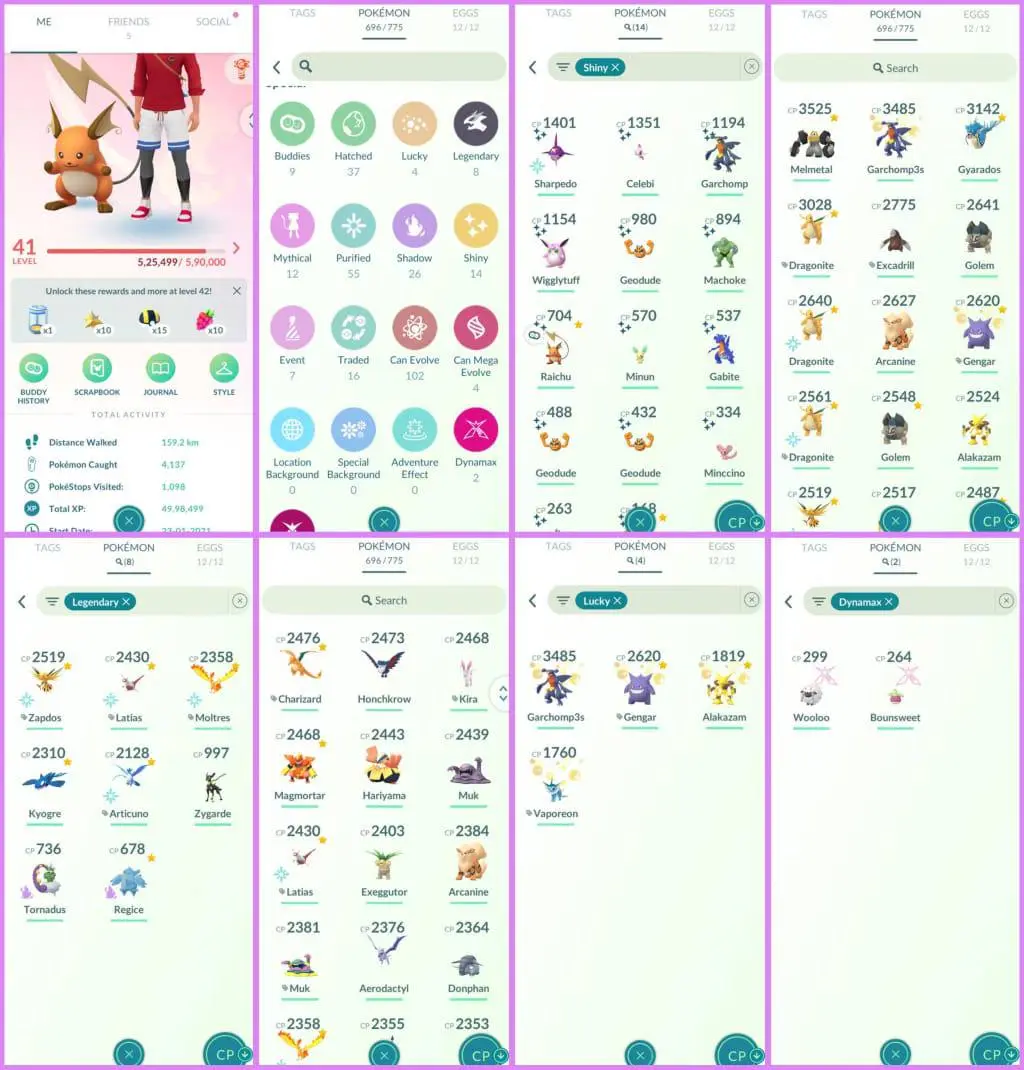 LEVEL 41(VALOR)⭐️696/775 Pokemon⭐️14 Shiny⭐️8 Legendary⭐️Lucky Gharchomp⭐️Lucky Gengar⭐️Name Change Available⭐️Instant Delivery🚚