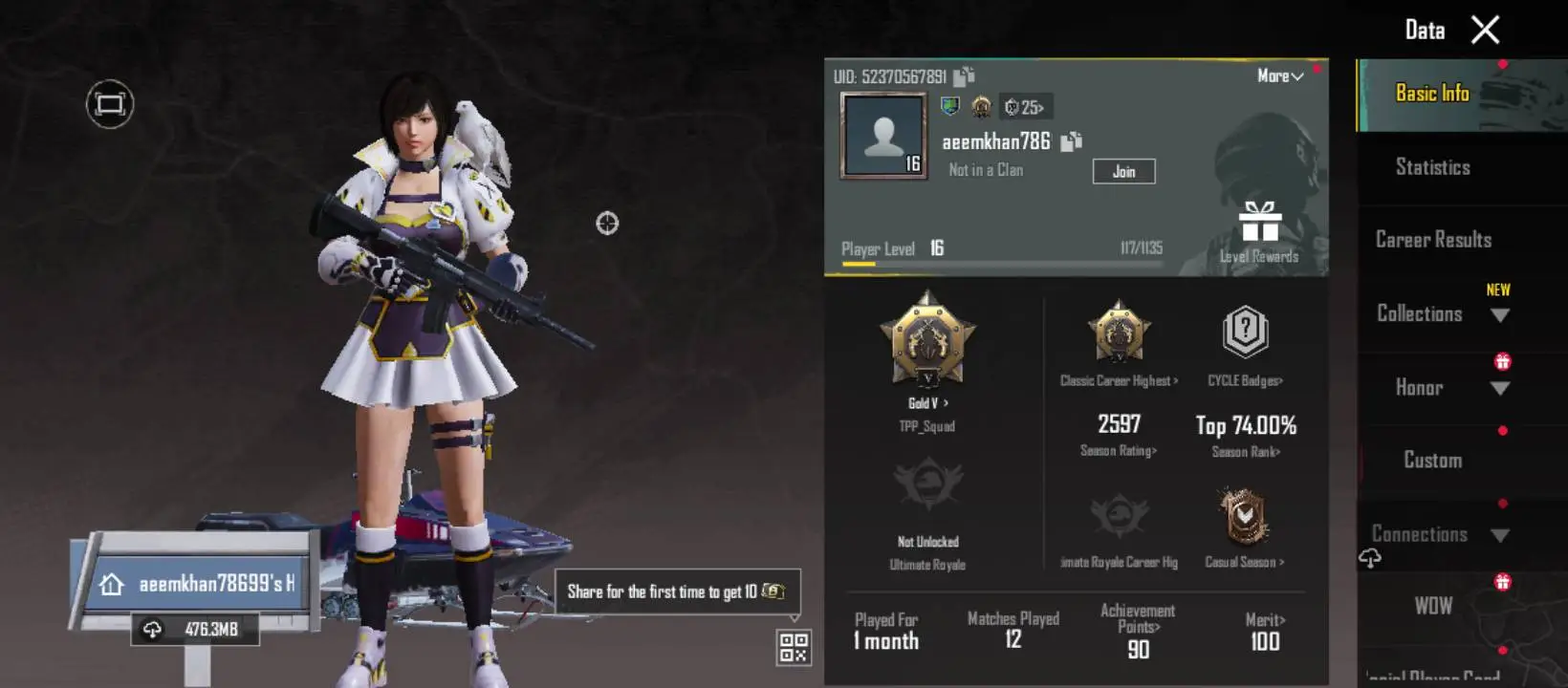 🧈Gold🧈 Almost Level 20🔥 PUBG Global 🌍 Ready For Ranked 🚀 Server/Name Editable 💎 Gmail Access🛡️Full Access✅ Instant Delivery✅