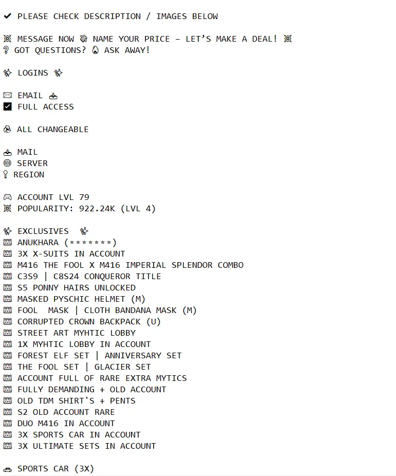 👑 X SUIT ANUKHARA (7⭐) ✨ FULL MAX 🚗 BUGATTI DROP CAR 💥 5x ULTIMATES 🏎️ 3x SPORT CARS 🎁 4x LOOT CRATES 🔫 2x M416 💥 26X GUNLAB