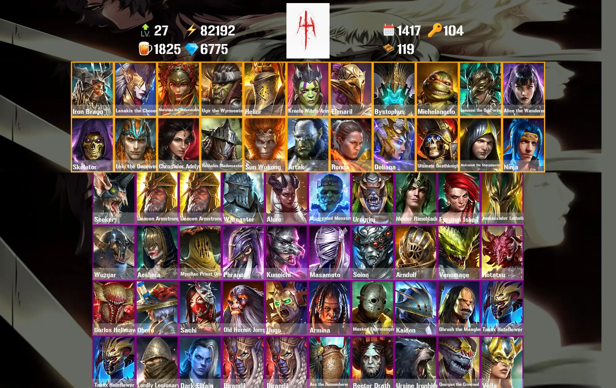 1417 Days 82.2k Energy Iron Brago ⸱ Lanakis the Chosen ⸱ Marichka the Unbreakable ⸱ Ugir the Wyrmeater ⸱ Helior ⸱ Seeker ⸱ Deacon Armstrong ⸱ 51.7m Silver ⸱ 6.8k Gems