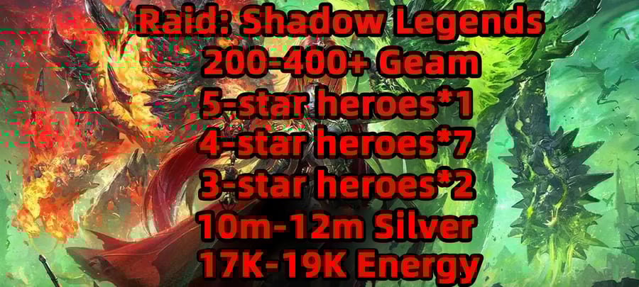 【Plarium ID】3800+ Gems | 5-star heroes*10-13 | 4-star heroes*9 | 3-star heroes*2 | 37m-39m Silver | 40K-43K Energy | Automatic delivery✅