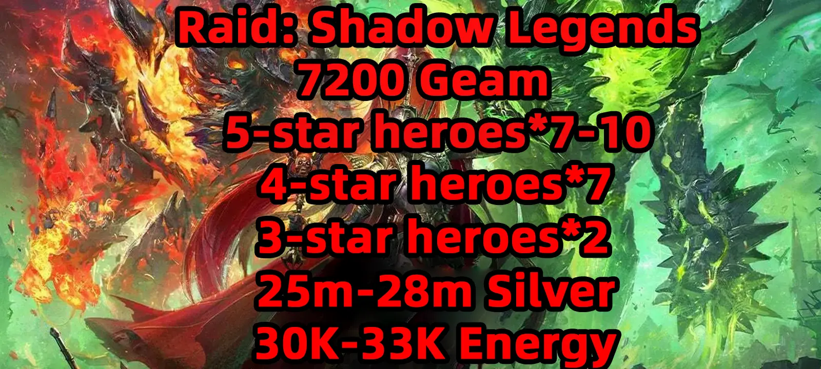 【Plarium ID】7200 Gems | 5-star heroes*7-10 | 4-star heroes*7 | 3-star heroes*2 | 25m-28m Silver | 30K-33K Energy | Automatic delivery✅