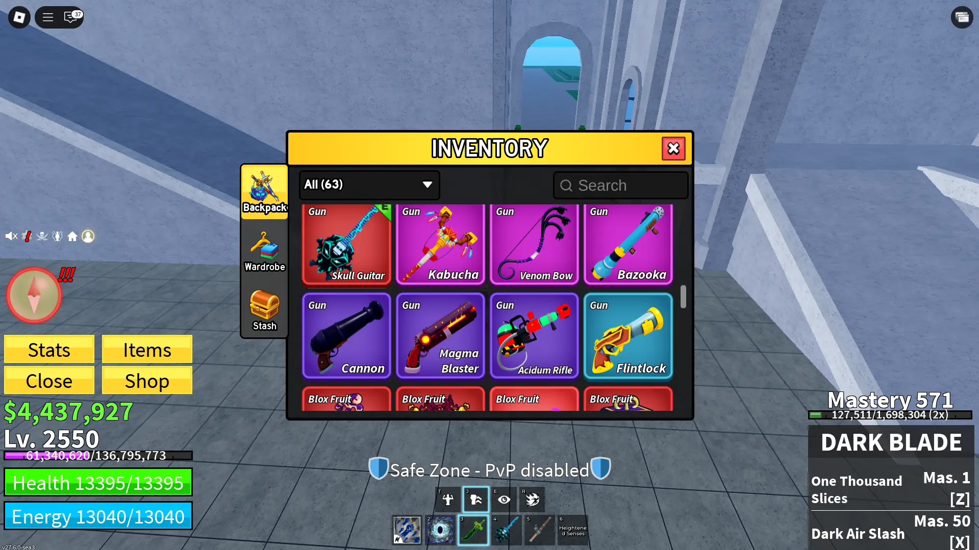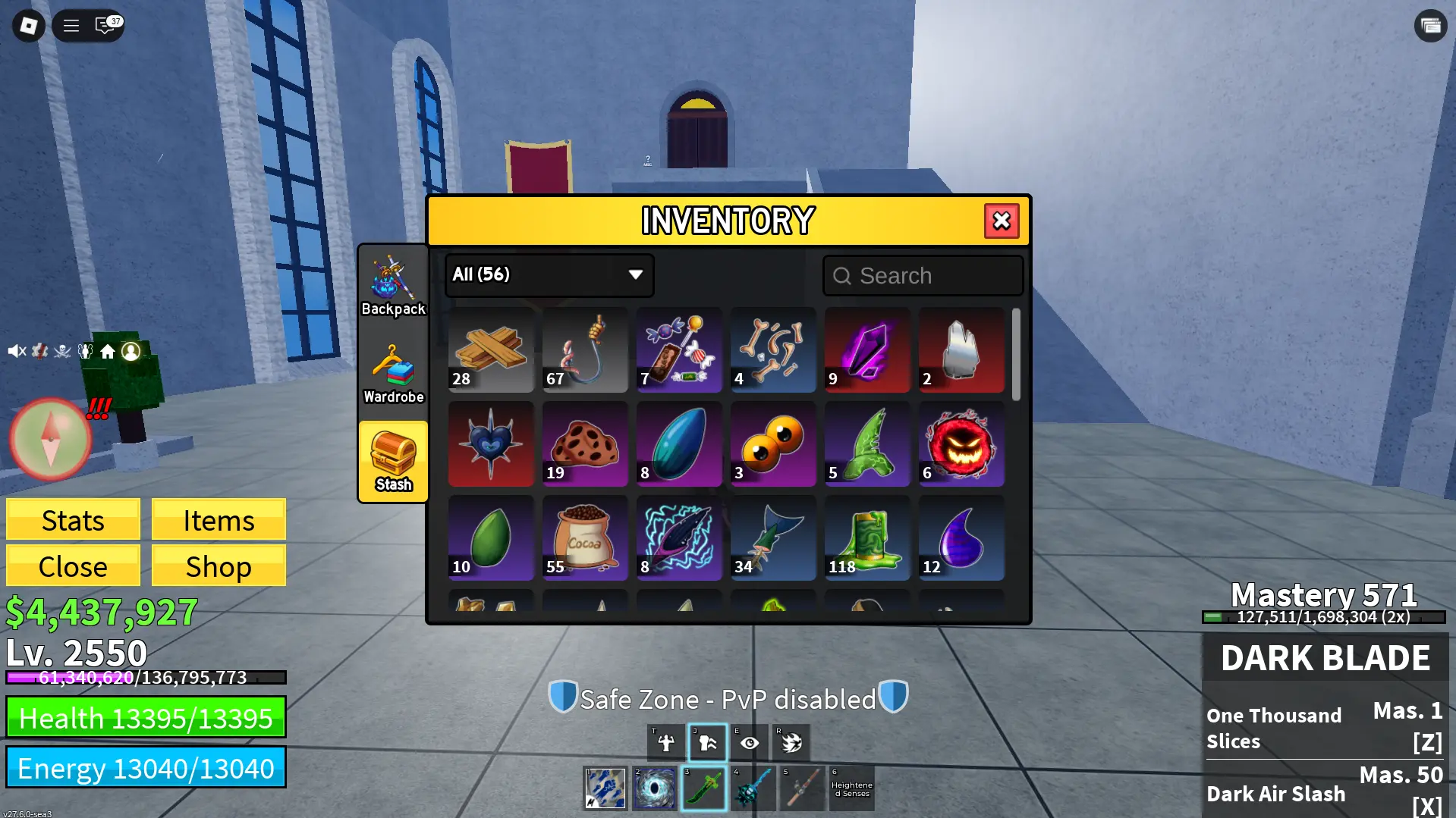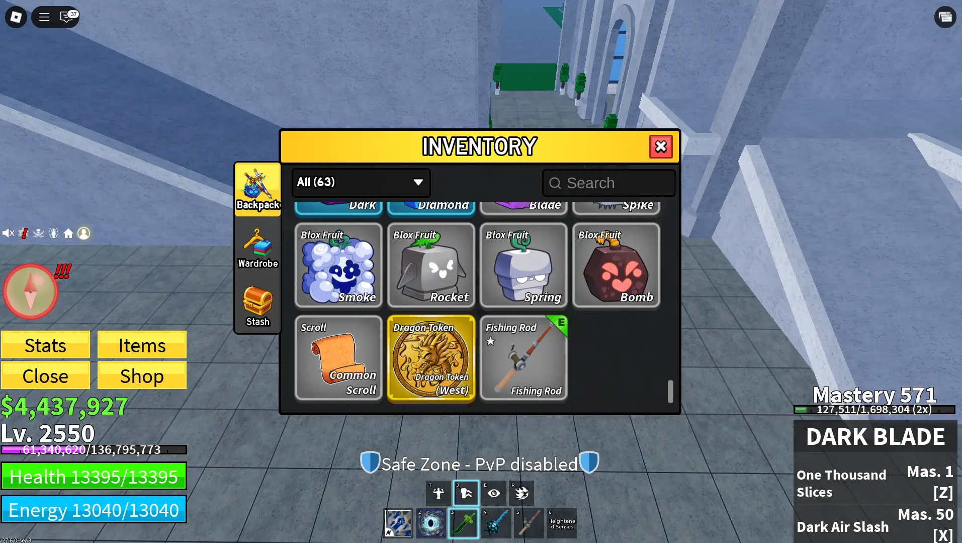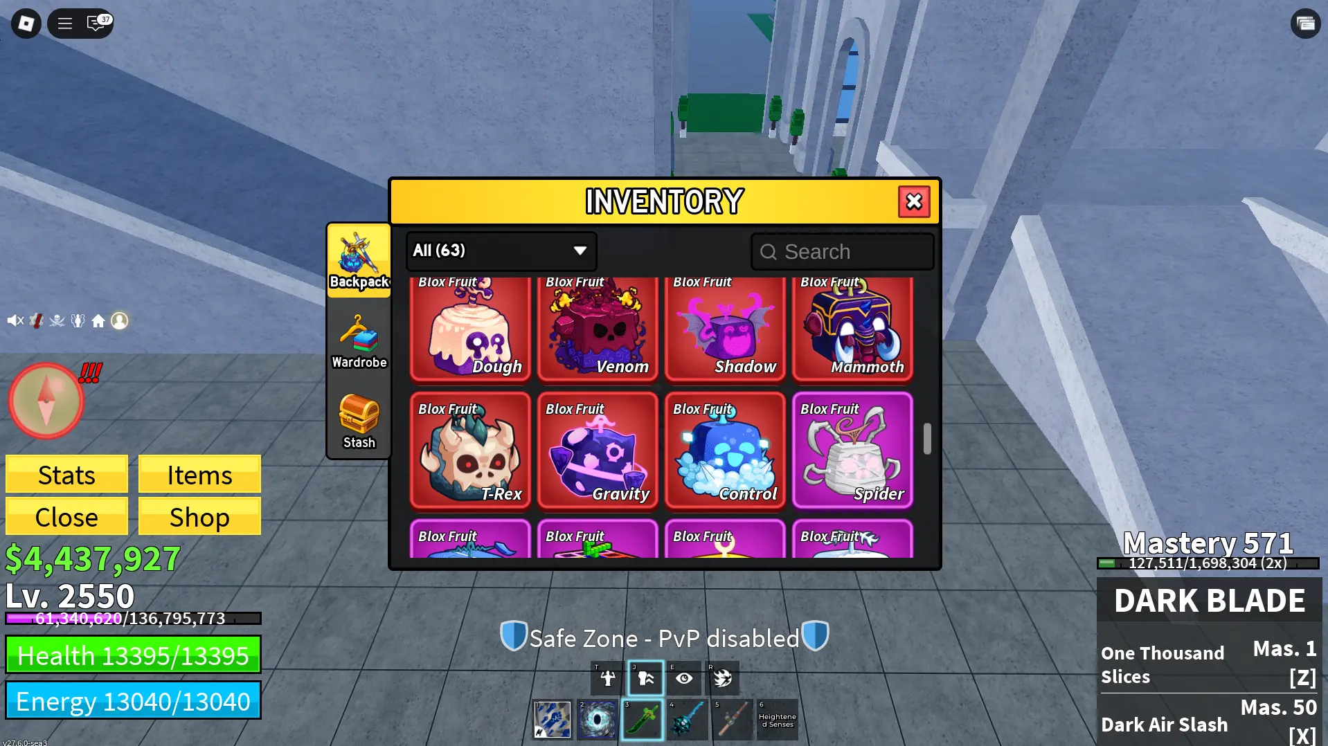 🔥 2550 LVL | 🐉 PERM Dragon | 🧬 8 PERM Fruits | ⚔️ Dark Blade