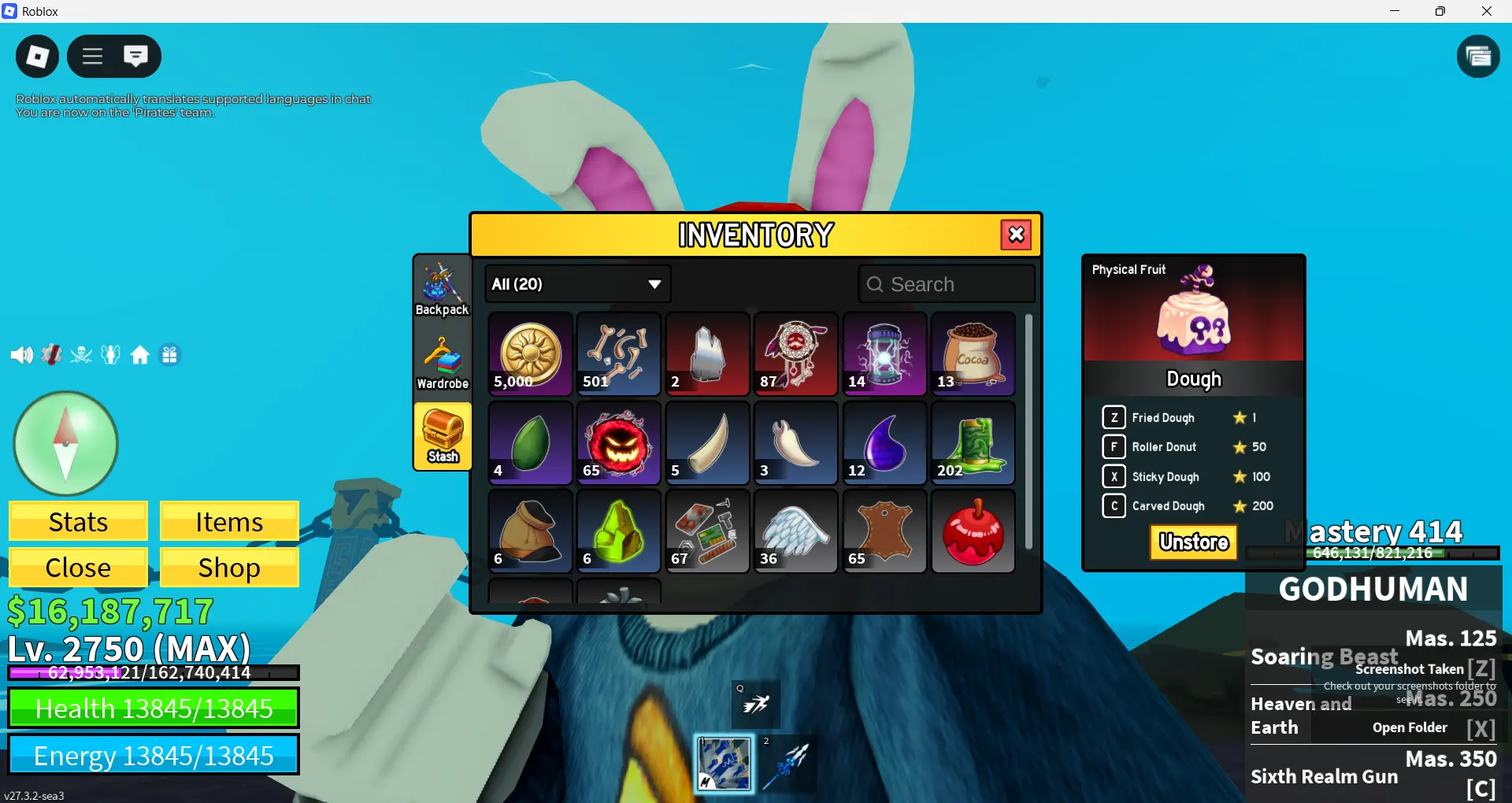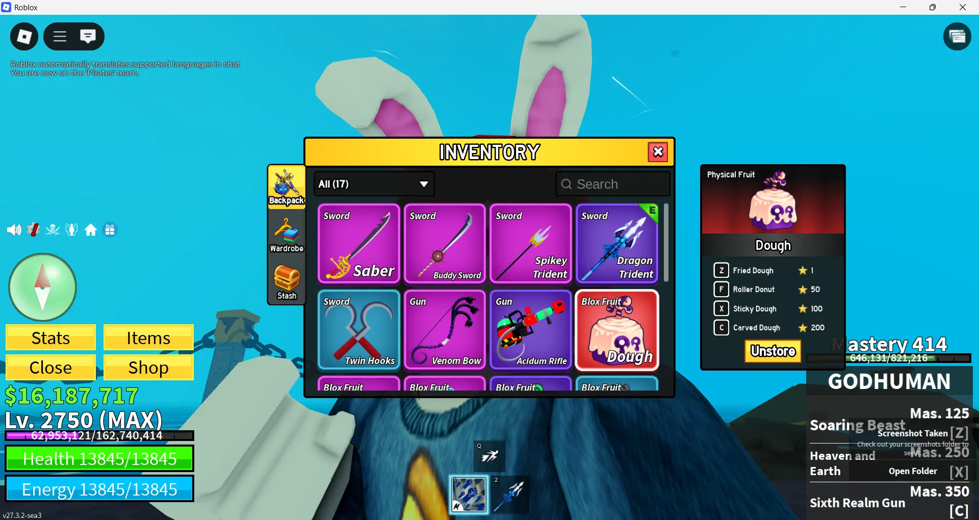 【🪐 2750 MAX BLOX FRUIT 🪐】【🌕 DOUGH FRUIT 🌕】「💥 GOD HUMAN 💥」+ 🍓 Random Fruits + ⚔️ Weapons | Fast Delivery⚡ | Unlinked🔗