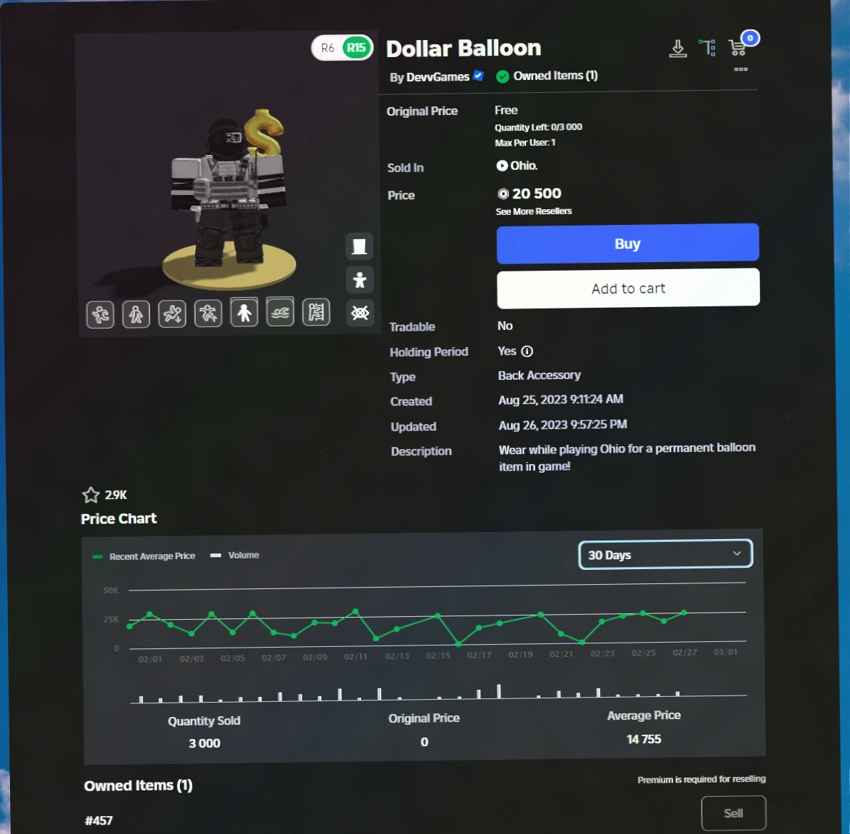 [STACKED 258000 ROBUX SPENT ⸱ 90000 Inventory Value] Korblox Deathspeaker+Headless Horseman+Dollar Balloon+Many Games Progress/Purchases #ACC-160538