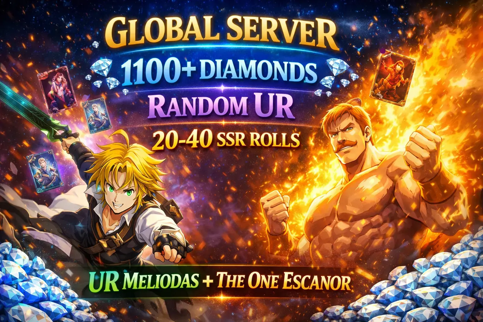 |Global SERVER| 1100+ Diamonds ◈ Random UR ◈ 20-40 SSR roll ◈ UR Meliodas + The One Escanor ◈ Instant Delivery