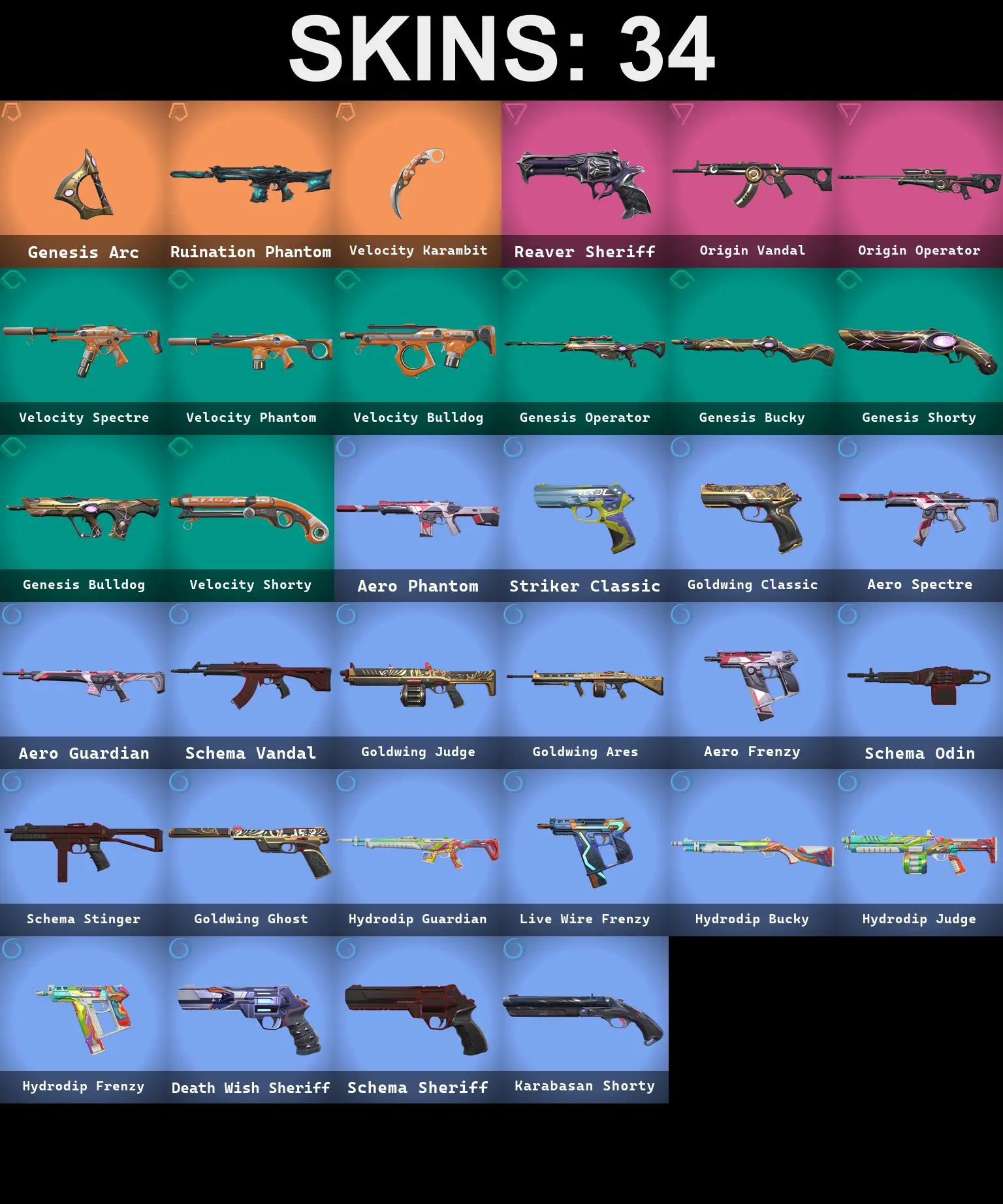 ❤️ 34 SKINS ❤️ 2 KNIFE ❤️ RUINATION PHANTOM ❤️ REAVER SHERIFF ❤️ ORIGIN VANDAL ❤️ ORIGIN OPERATOR ❤️ GENESIS ARC ❤️ VELOCITY KARAMBIT ❤️ VELOCITY SPECTRE ❤️ VELOCITY PHANTOM ❤️ VELOCITY BULLDOG ❤️ GENESIS OPERATOR