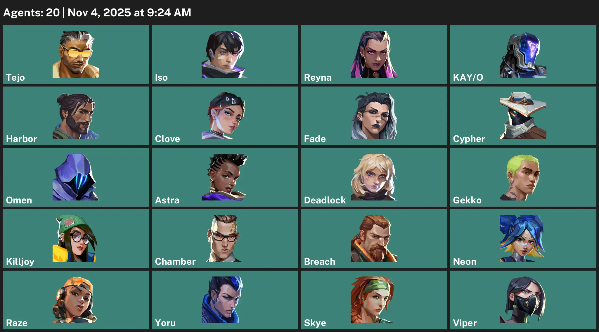 👂 AP 👎 Unranked 🪣 17 Skins 🦽 100 VP ⛺️ 20 Agents 🔏 Value: 1275 VP 🏌️ .SYS Melee 🦼 .SYS Bucky 🚴♂️ .SYS Vandal ⚾️ .SYS Stinger 🥪 Team Ace Judge 🦀 .SYS Sheriff