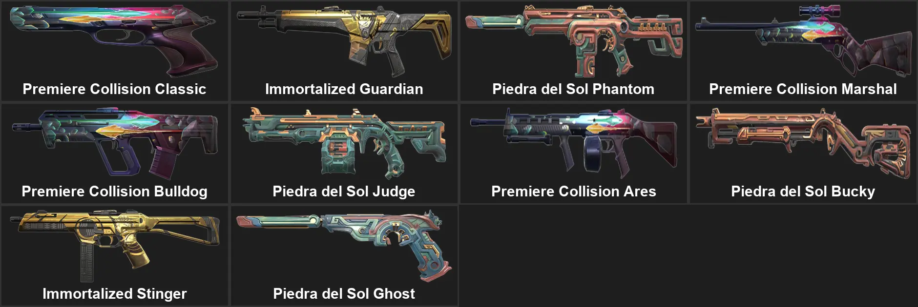 EU 【10 SKINS】 Premiere Collision Classic | Immortalized Guardian | Piedra del Sol Phantom | Premiere Collision Marshal | Premiere Collision Bulldog | Piedra del Sol Judge | Full Access 🔐 • Instant Delivery ⏱️ • Mail Changeable 📧