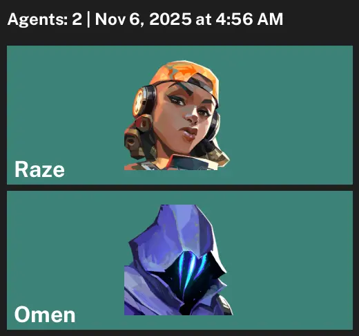 🚚 EU 🪂 Unranked 📍 1 Skins 🥕 275 VP 🥶 2 Agents 🔗 Value: 875 VP 🐜 Luxe Vandal