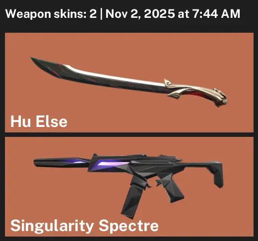 🪴 EU 💉 Unranked 💥 2 Skins 🪻 625 VP 🎟 4 Agents 😣 Value: 4725 VP 🚌 Hu Else 🏚 Singularity Spectre