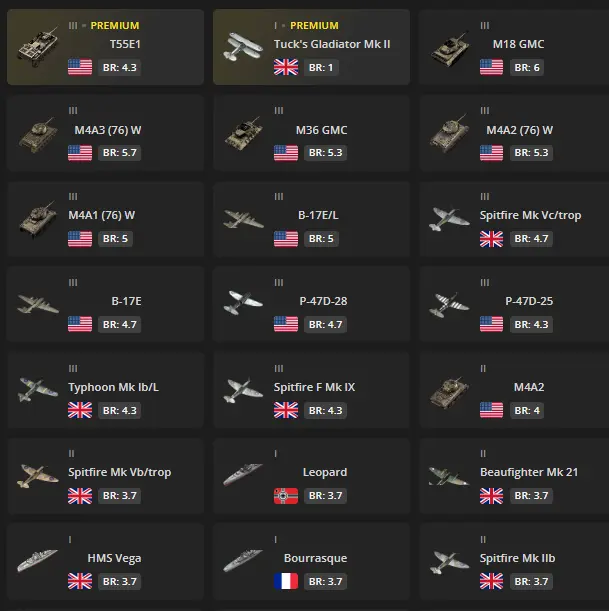 ✈️ War Thunder | M18 GMC, M4A3 (76) W, M36 GMC, M4A2 (76) W, M4A1 (76) W, B-17E/L, Spitfire Mk Vc/trop | ⭐ PREMIUM + EUA/UK LOADOUT | BR 5-6 | 🔥 Lubukus Store