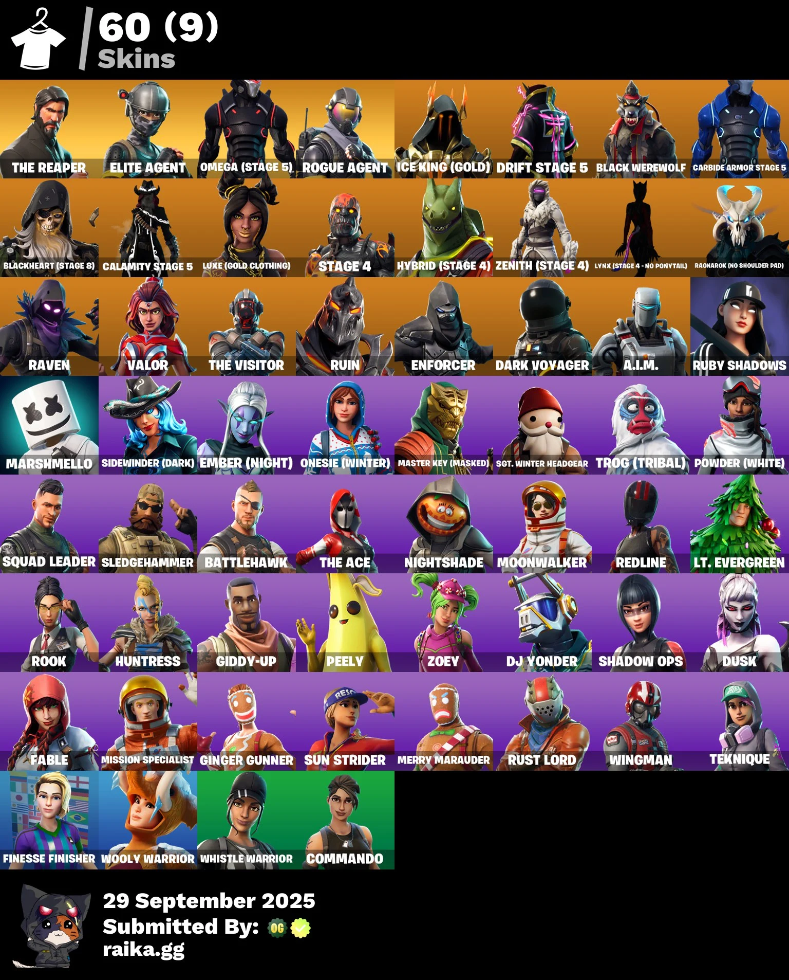 🔥100$ Spent [PC/PSN/XBOX] 60 skins | The Reaper | Take The L | Elite Agent | Raven | Peely | Rust Bucket | Omega (stage 5) mssh537