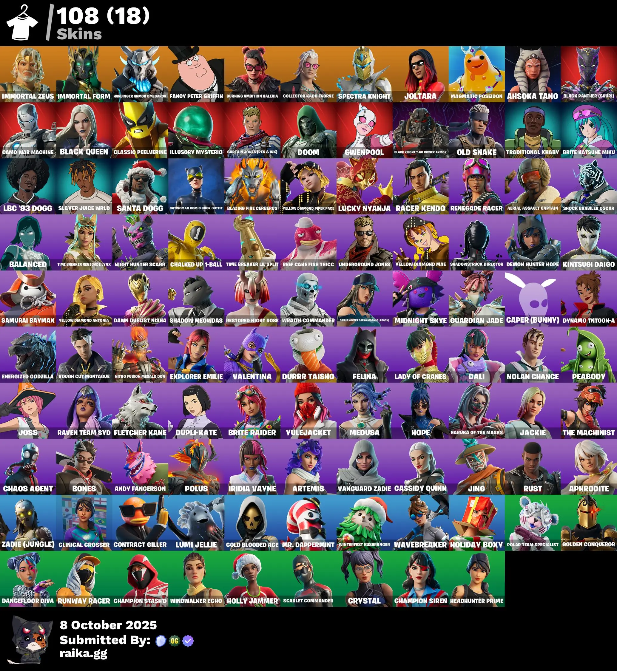 108 TOP SKINS [PC/PSN/XBOX]|VALENTINA ✅DUPLI-KATE ✅ASHOKA TANO ✅HOPE ✅ BLACK QUEEN✅RENEGADE RACER✅LADY OF CRANES✅WAVEBREAKER