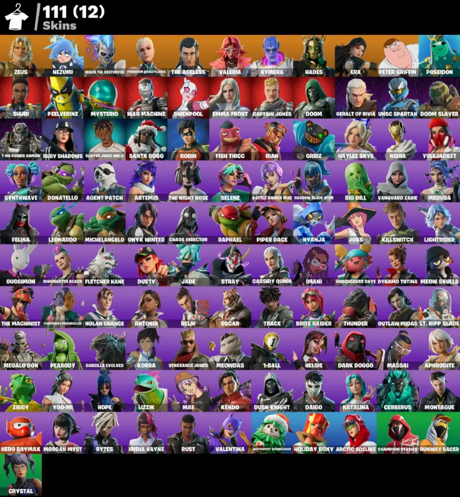 111 SKINS βΈ± 1200 VB, Onyx Winter | Big Dill | Joss | Helsie | Meowdas | Agent Patch | Ruby Shadows | Donatello | Yoo-mi | UNSC Spartan | Gwenpool | Stray | Zeus