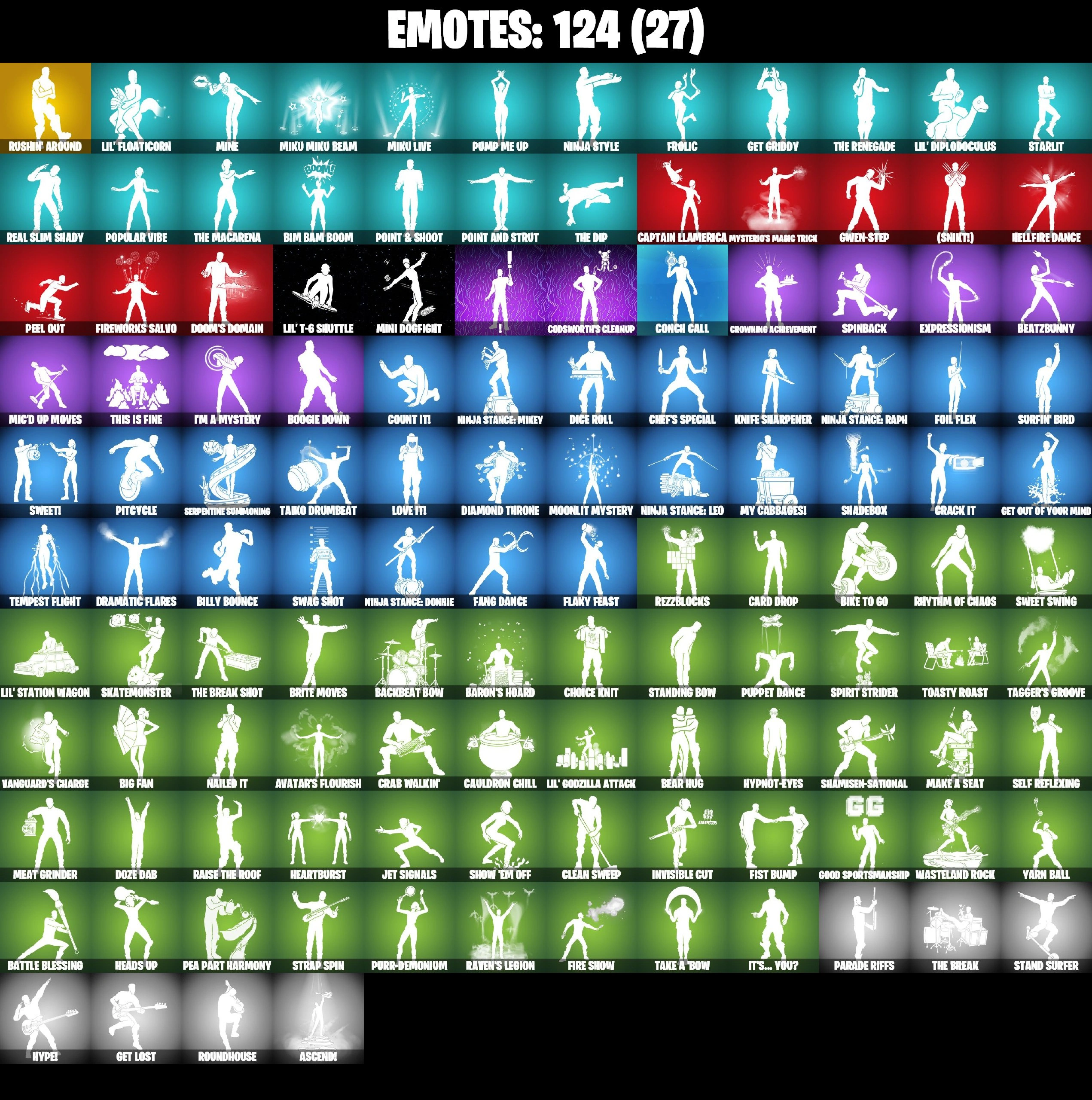 ❤️ 120 SKINS ❤️ SPIDER-MAN MILES MORALES ❤️ RUSHIN AROUND ❤️ GET GRIDDY ❤️ AHSOKA TANO ❤️ STAR WAND ❤️ KARUTA HARLEY QUINN ❤️ APRIL ONEIL ❤️ PRINCESS LEXA ❤️ ERA MAX ❤️ ARTEMIS ❤️ MARIPOSA ❤️ SPIRIT HUNTER SAEKO ❤️ SKULL SCOUT ❤️
