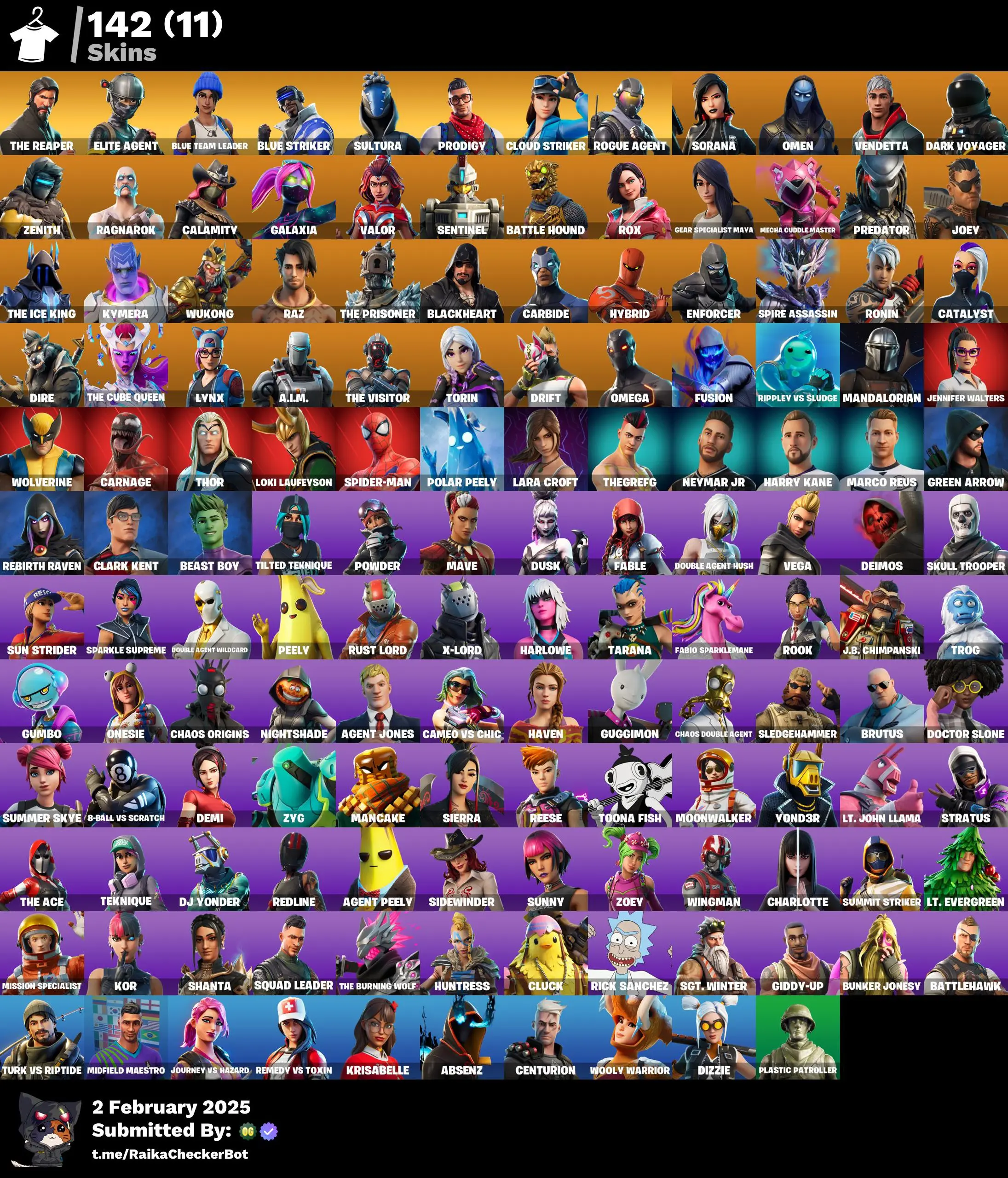 ๐ 142 Skins โก๏ธPC/PSN/XBOXโก๏ธ๐ THE REAPER ๐ ELITE AGENT ๐ TAKE THE L ๐ OMEGA ๐ DRIFT ๐ HARRY KANE๐ MARCO REUS ๐ SKULL TROOPER ๐ BEAST BOY ๐ FOOTBALLER SKIN ๐ DOUBLE AGENT PACK ๐ FRESH EMOTE ๐ FULL ACCES