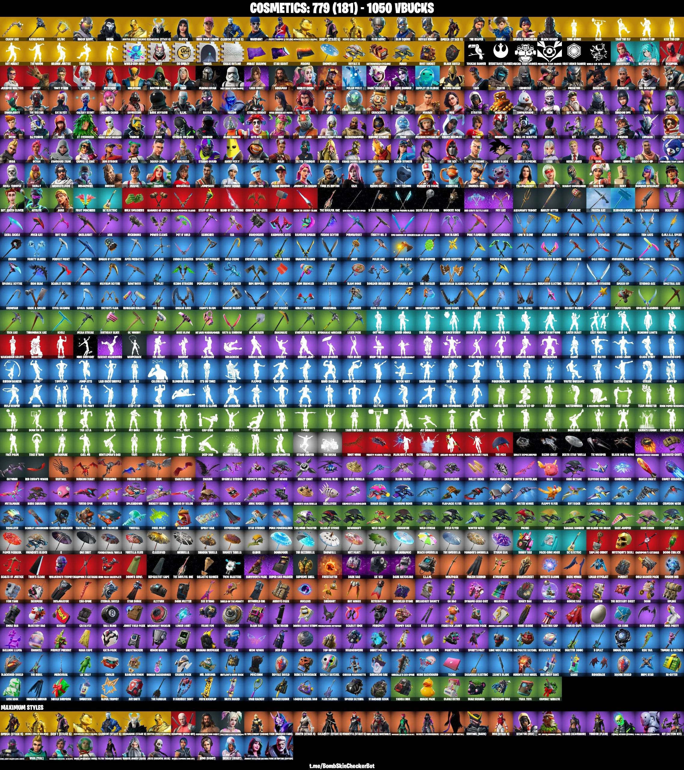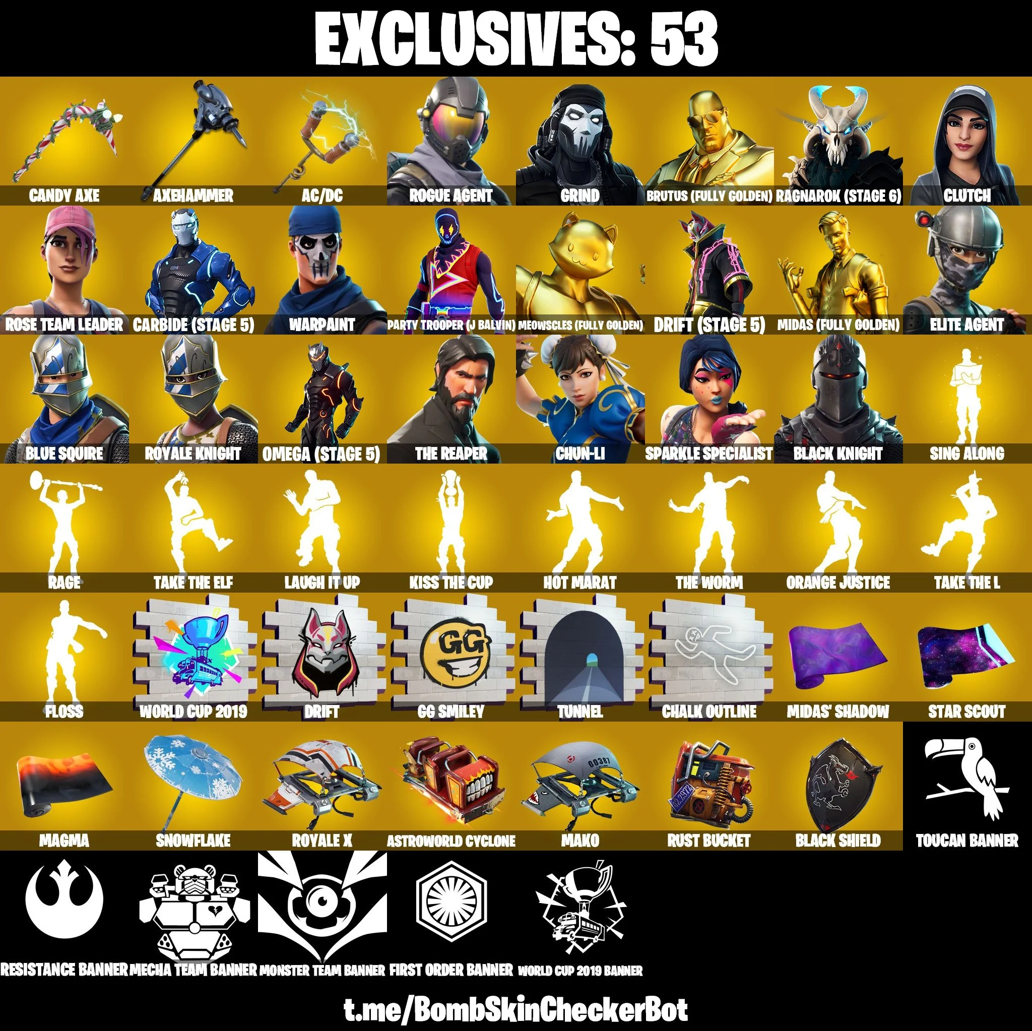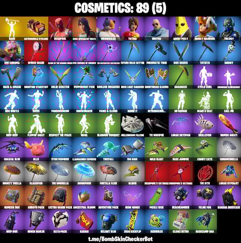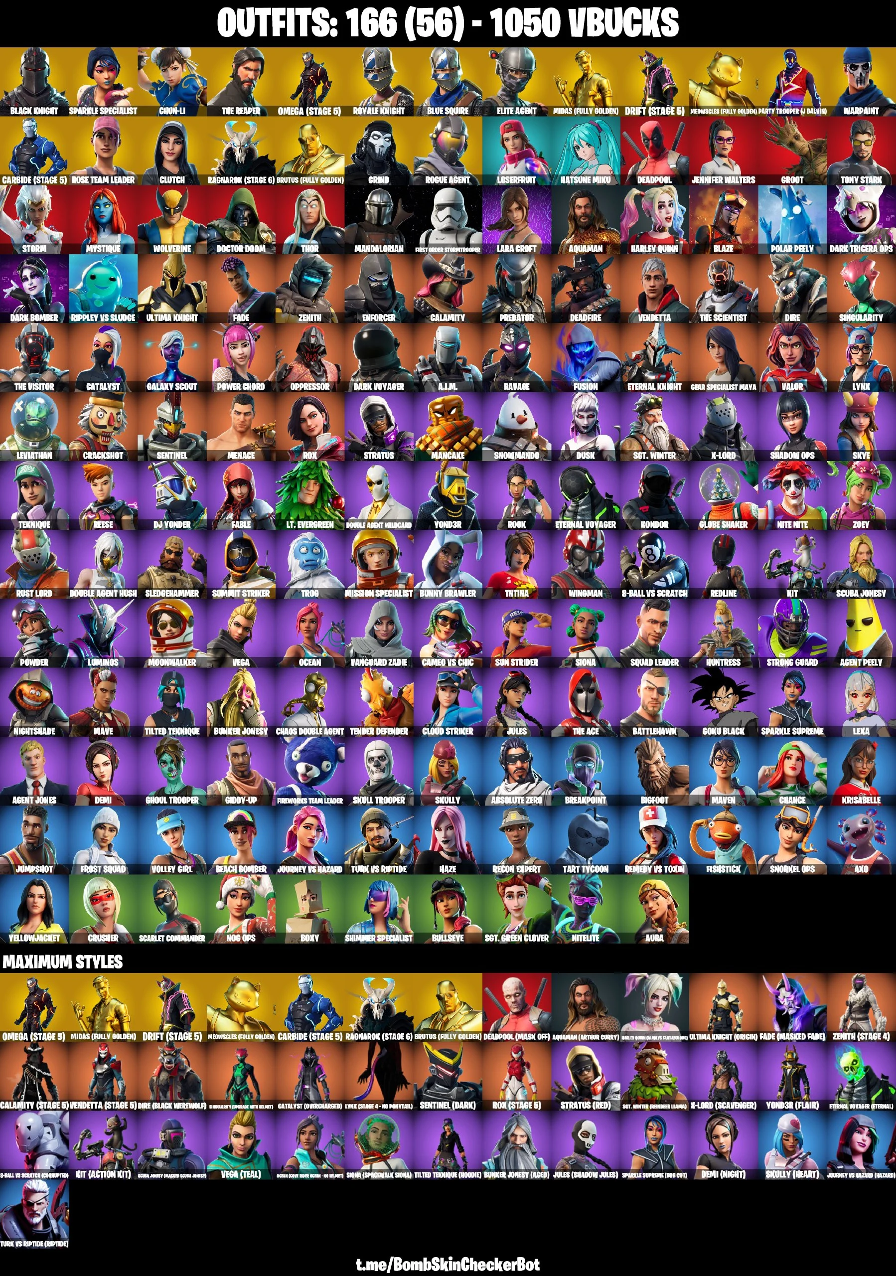 ✅166 Skins✅ Black Knight , AC/DC , Sparkle Specialist , Floss , Chun Li , Axehammer
