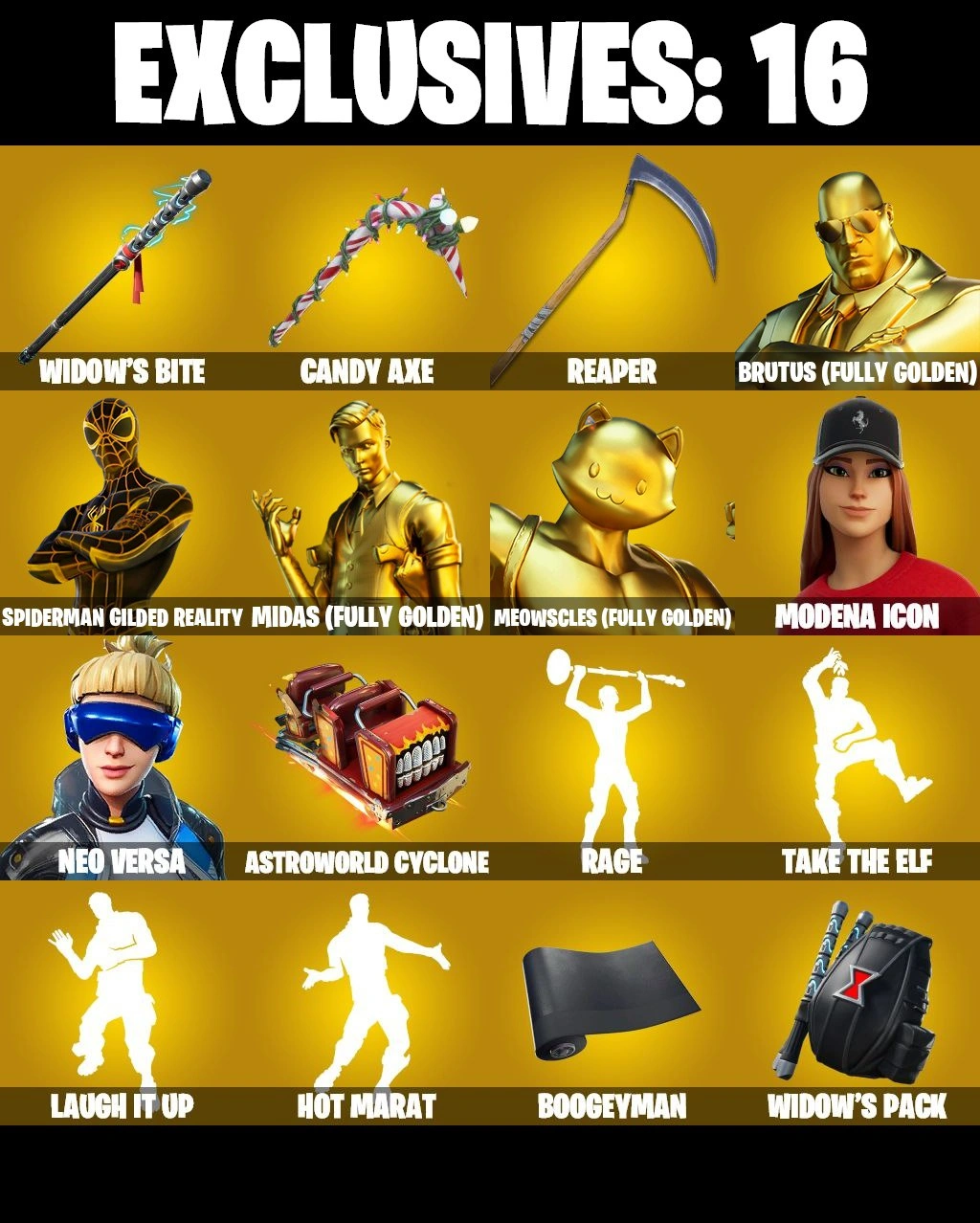 167 SKINS | NEO VERSA | BLACK WIDOW OUTFIT | GHOUL TROOPER | GILDED SPIDER-MAN | SPIDER-MAN NO WAY HOME | MJ | DARTH VADER | SITH TROOPER | KYLO REN | POISON IVY | GET GRIDDY | LAUGH IT UP | CANDY AXE | STAR WAND | SON GOKU | CATA