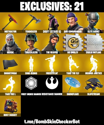 🔮18 Skins🔮 Royale Knight💎Blue Squire💎The Reaper💎Take The L💎The Worm💎Elite Agent💎Rust Bucket💎Orange Justice💎Snowflake