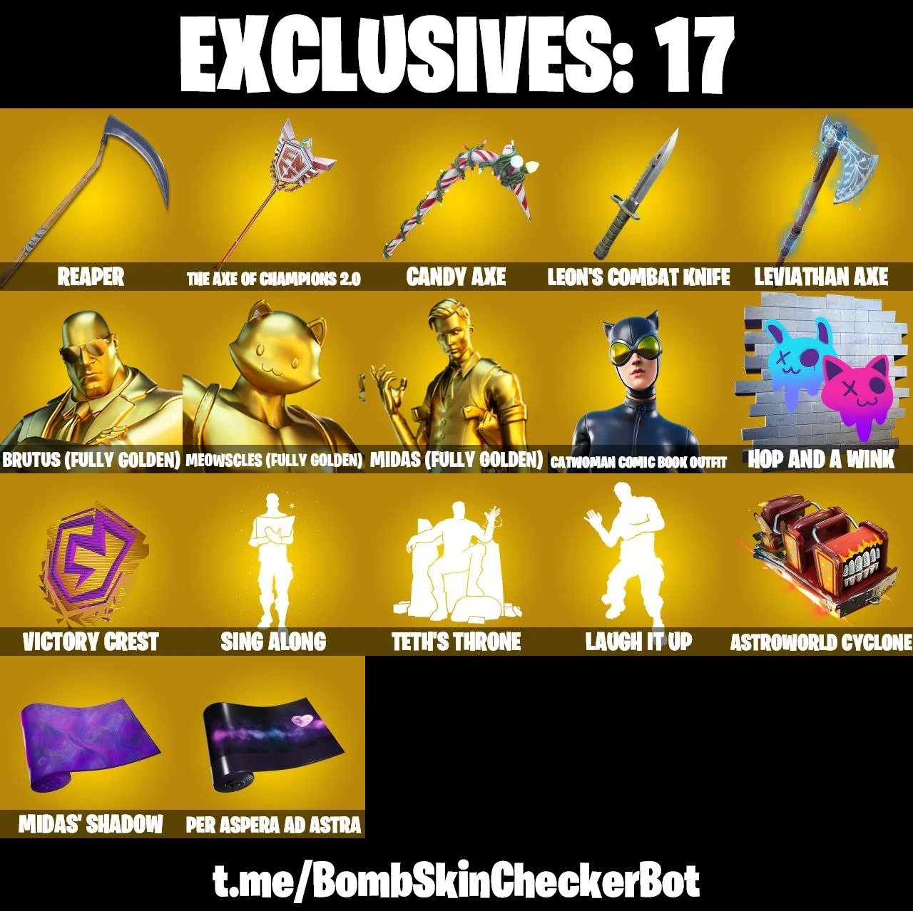 【220 SKINS】 GOLD MIDAS ❤️ GOLD BRUTUS ❤️ SLIM SHADY ❤️ CANDY AXE ❤️ PARENTAL CONTROL ❤️ (PC/PSN/XBOX)