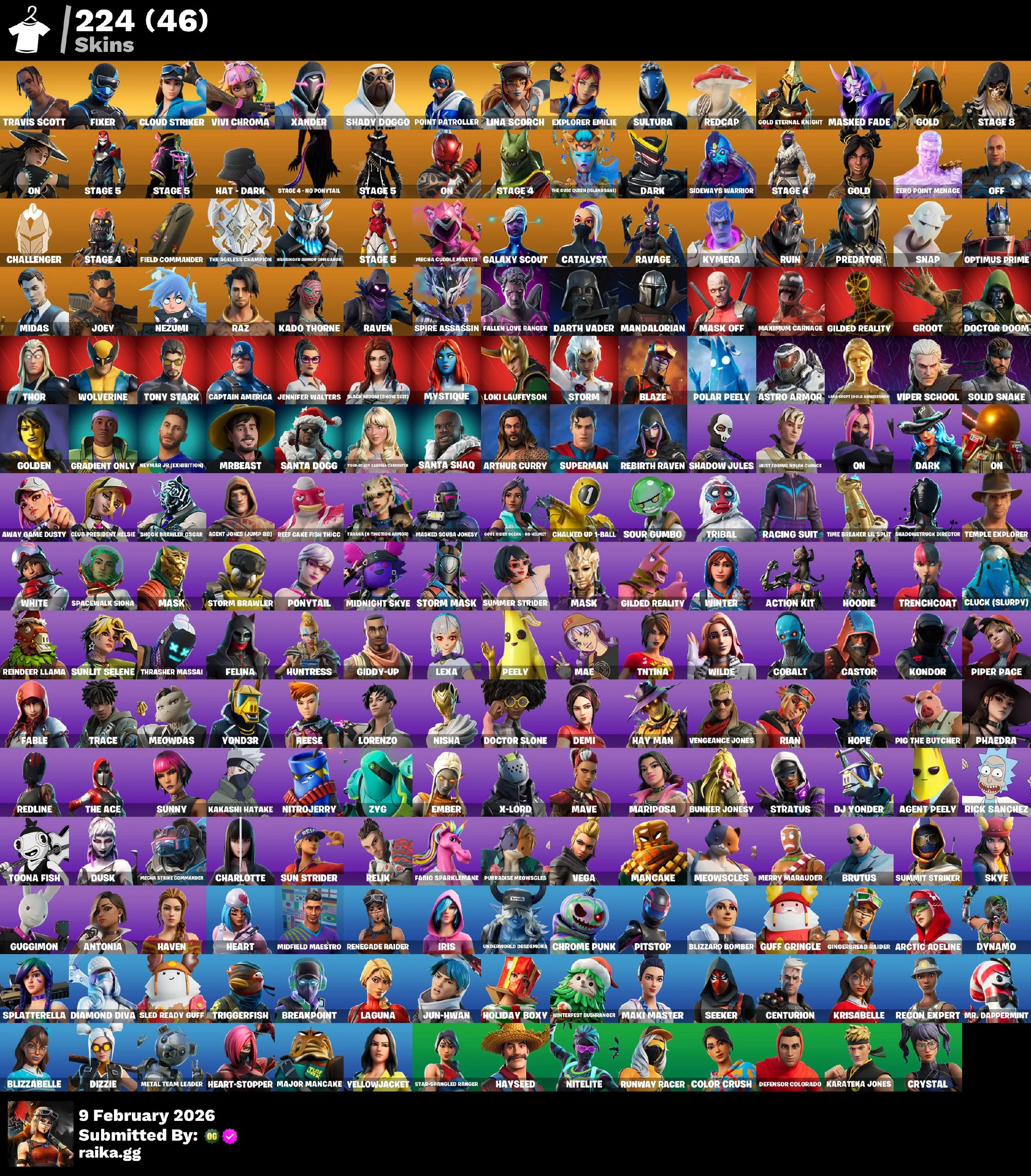 224 SKINS | TRAVIS SCOTT | BLACK WIDOW | REDCAP | SHADY DOGGO | REAPER | SHIITAKE SLASHER | SQUARE UP | LAUGH IT UP