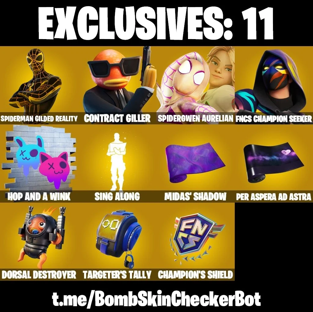 【260 SKINS】 FNCS CHAMPION SEEKER ❤️ CONTRACT GILLER ❤️ SPIDERGWEN AURELIAN ❤️ SANTA DOGG ❤️ PARENTAL CONTROL ❤️ (PC/PSN/XBOX)