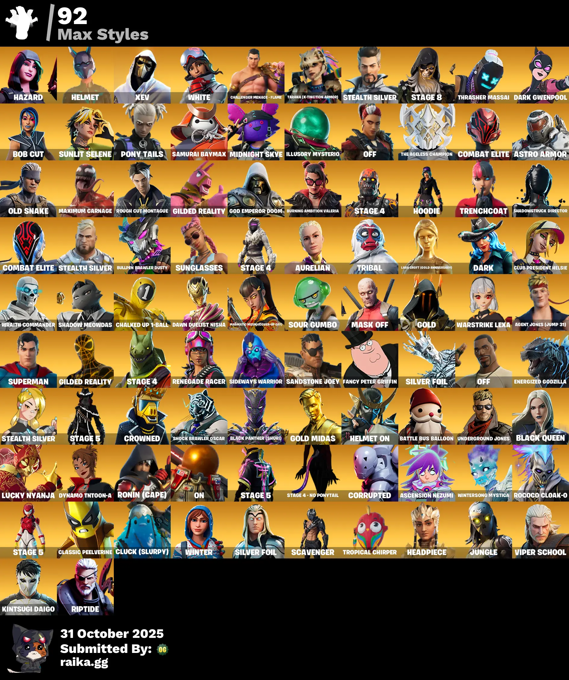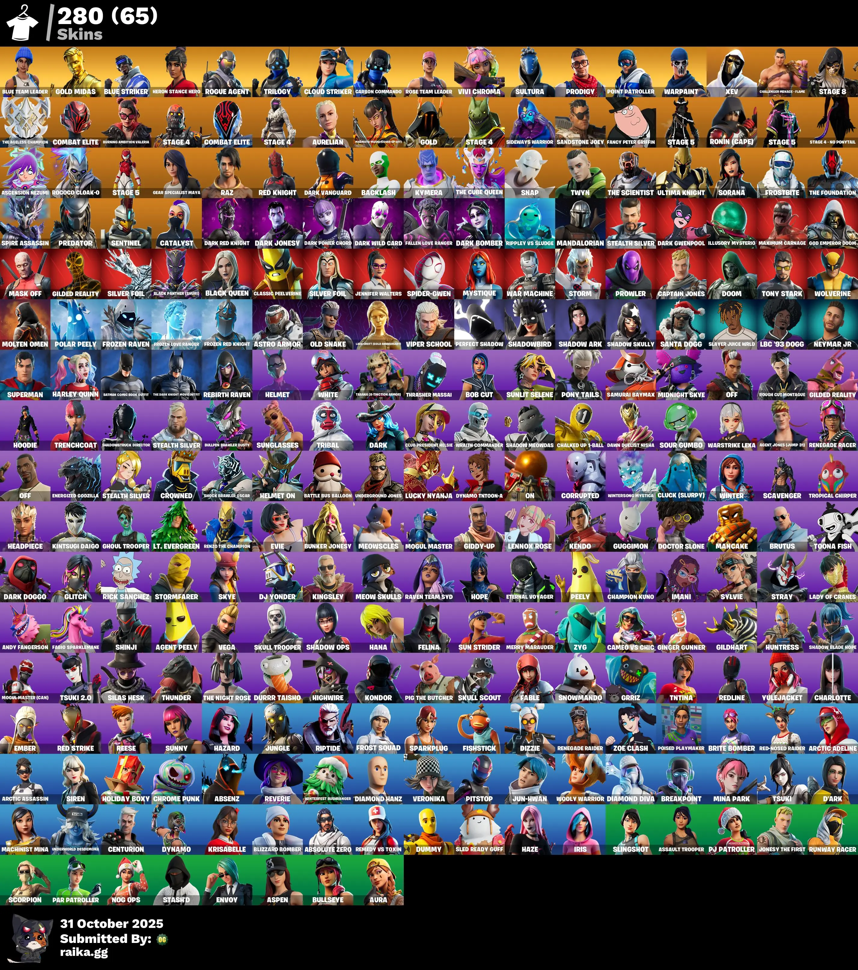 280 skins | Laugh It Up🎃Tsuki🎃Get Griddy🎃Gold Midas🎃Candy Axe🎃Lara Croft🎃Spider-Man🎃Spider-Gwen🎃Harley Quinn🎃Take The Elf🎃Merry Marauder🎃Ginger Gunner🎃Go Mufasa🎃Haven🎃The Night Rose🎃Spellwork Scimitar🎃Equalizer🎃The Doomblade D5286