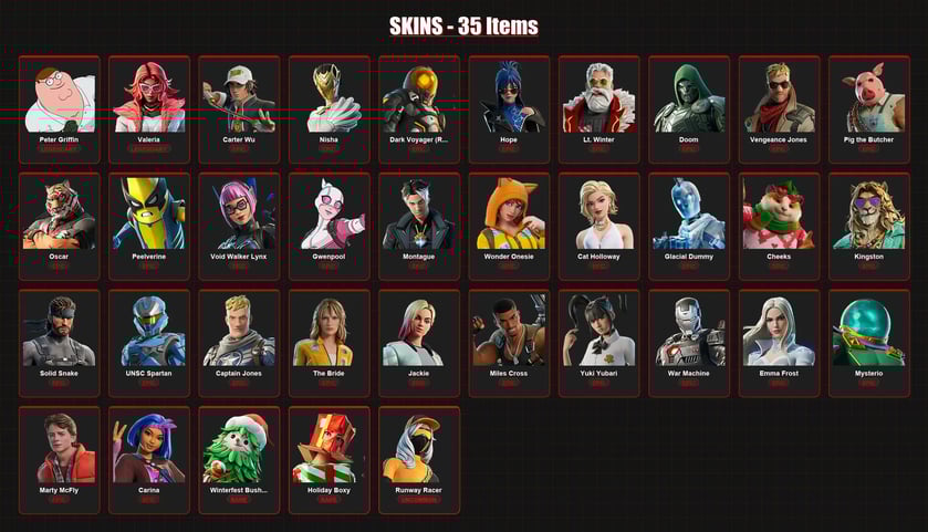 31 Skins | Deadeye | Vegeta | Peter Griffin | Hades | Valeria | Zeus | Solid Snake | Pig the Butcher | Cerberus | Aang | Lvl 469