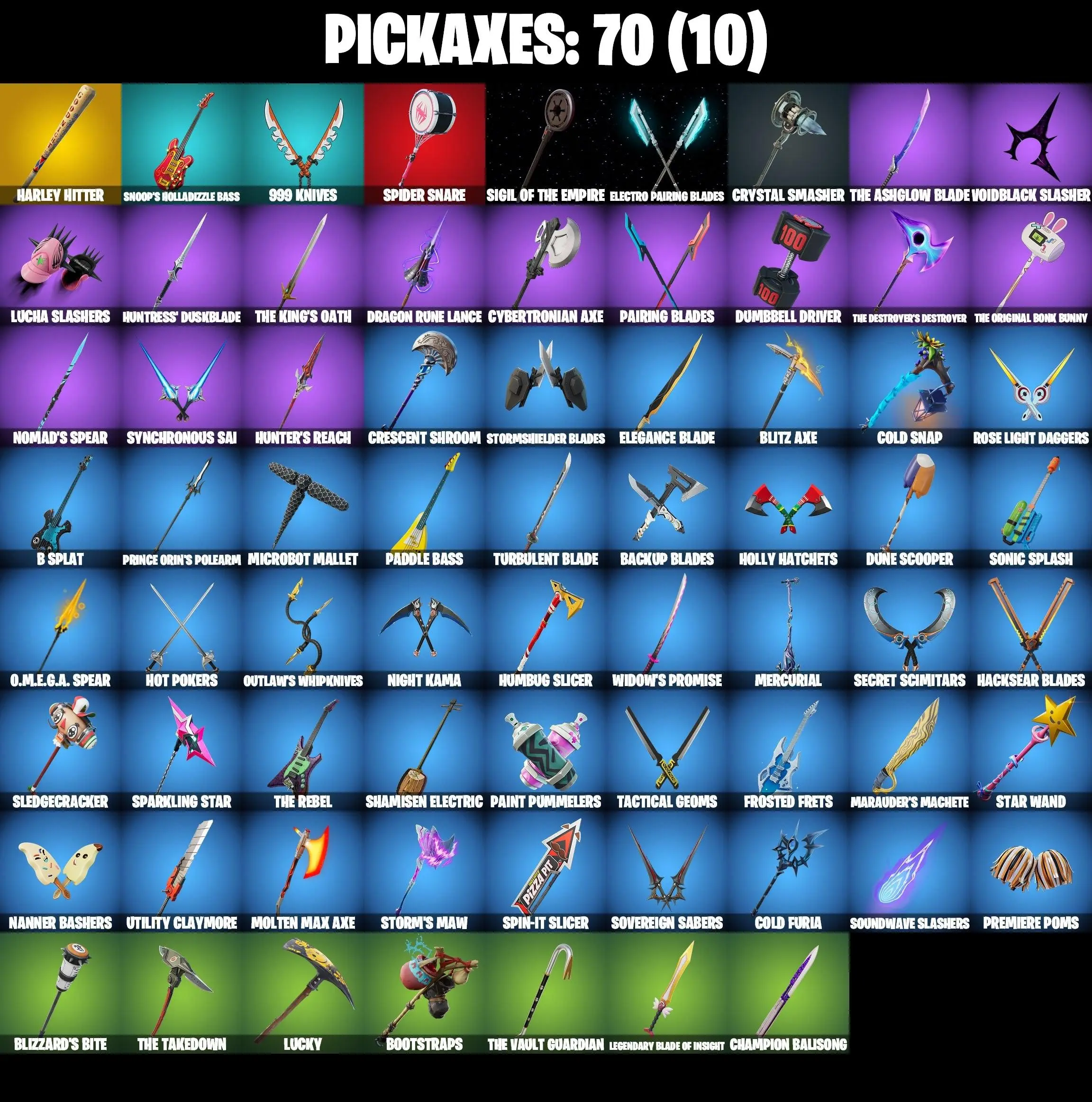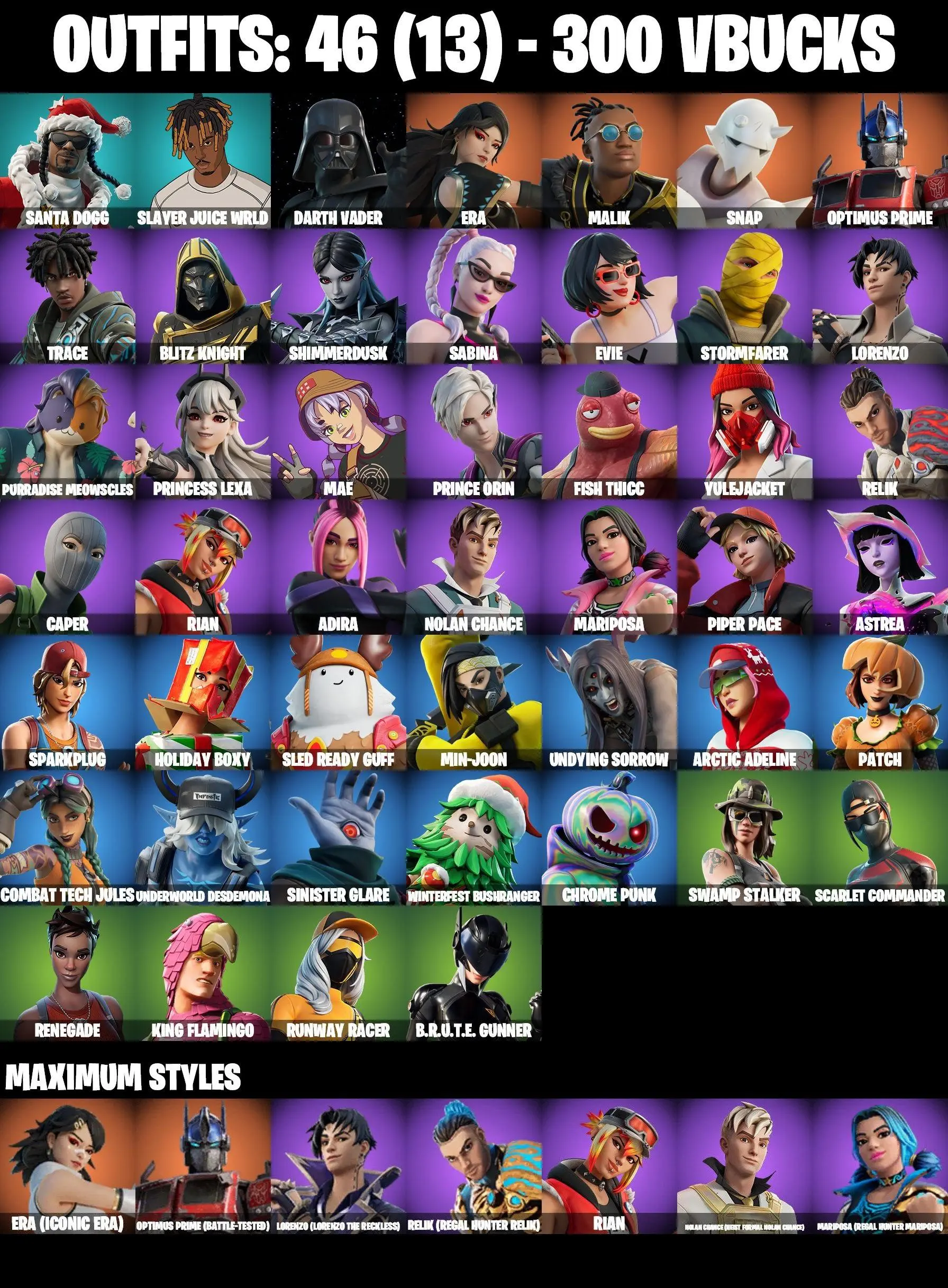 46 SKINS ⸱ PRINCESS LEXA ⸱ PRINCE ORIN ⸱ SHIMMERDUSK ⸱ UNDYING SORROW ⸱ UNDERWORLD DESDEMONA ⸱ SINISTER GLARE ⸱ RENEGADE ⸱ SPARKPLUG ⸱ PURRADISE MEOWSCLES ⸱ CAPER ⸱ CHROME PUNK ⸱ STAR WAND ⸱ HARLEY HITTER ⸱ PATCH ⸱ MAE ⸱ OPTIMUS P
