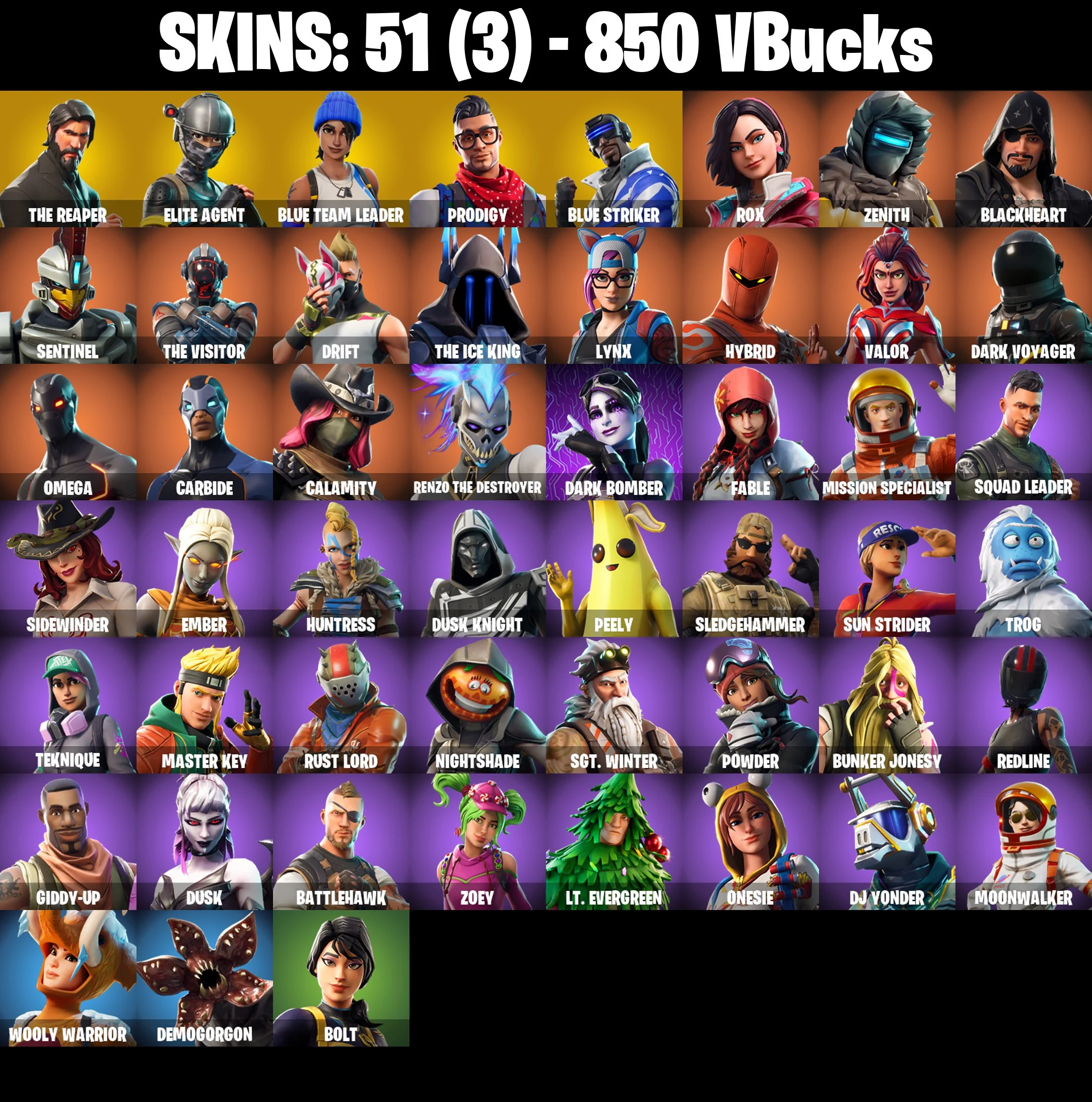 🎆51 SKINS ⚡️PC/XBOX⚡️ THE REAPER 👑 ELITE AGENT 👑 BLUE TEAM LEADER 👑 PRODIGY 👑 BLUE STRIKER 👑 ROX 👑 ZENITH 👑 BLACKHEART 👑 SENTINEL ⚡️ 850 VB #M648